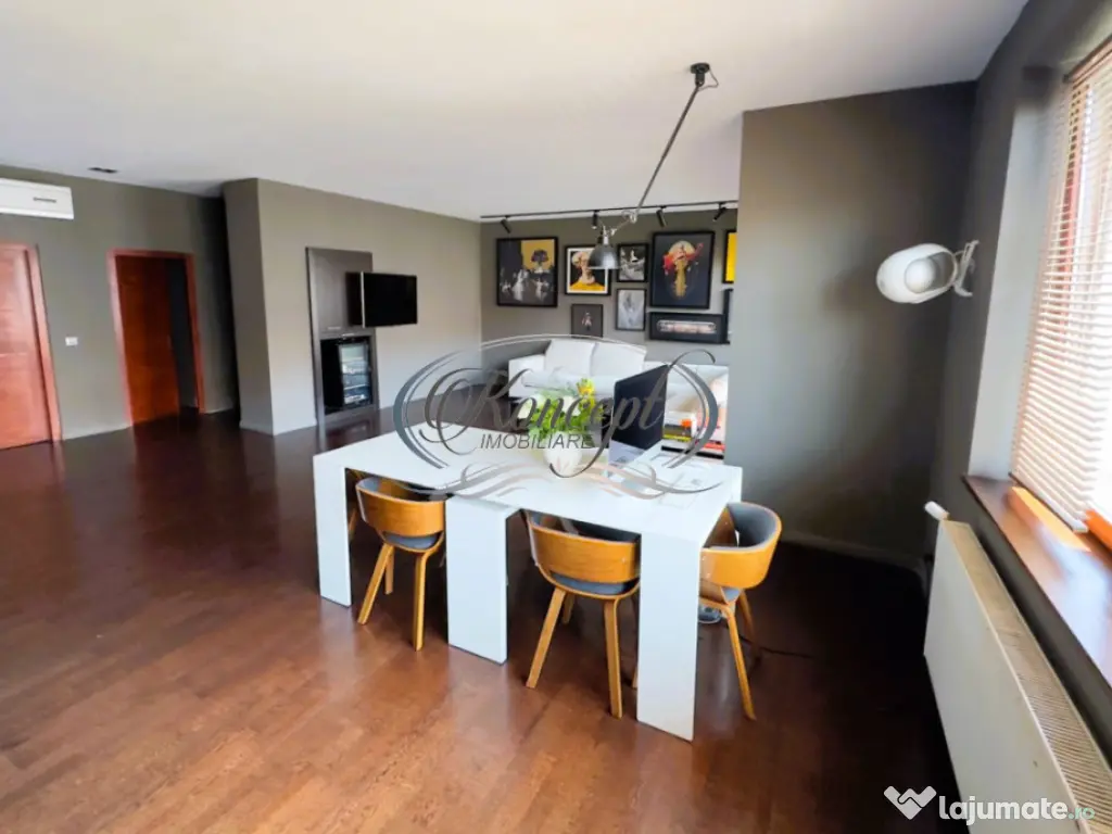 Koncept Imobiliare va ofera spre vanzare un apartament spatios situat in centrul Clujului, pe Bulevardul Eroilor, la etajul 2 al unei cladiri reprezentative prin arhitectura modernista interbelica, edificata in anul 1955. Fatada imobilului pastreaza elemente decorative specifice acestui stil, contribuind la farmecul aparte al zonei centrale si la valoarea patrimoniala a proprietatii. Cu o suprafața utila de 123 mp, la care se adauga o terasa de 9.6 mp si o logie de 4.7 mp, apartamentul impresioneaza prin spatii ample, luminoase si o compartimentare gandita pentru confortul locuirii urbane. Unitatea este compusa din 2 dormitoare, living generos, zona de dining, bucatarie separata, 3 bai, dressing, spatiu pentru depozitare si hol. Orientarea Sud-Nord asigura lumina naturala pe toata durata zilei, iar cele doua spatii exterioare ofera zone suplimentare pentru relaxare si aerisire. Proprietatea a fost renovata integral, iar finisajele sunt de calitate superioara, cu amenajari moderne si materiale atent selectate, pastrand in acelasi timp atmosfera distinctiva a cladirilor centrale. Apartamentul beneficiaza de centrala termica proprie si aer conditionat, iar compartimentarea flexibila permite adaptarea rapida a spatiilor, fiind potrivit atat pentru locuinta, cat si pentru activitati de birou. Vederea libera catre bulevard si spre curtea interioara accentueaza senzatia de spatiu si confort. Localizarea este unul dintre punctele forte majore: Bulevardul Eroilor reprezinta una dintre cele mai accesibile si vibrante artere ale orasului, cu acces direct la institutii, zone culturale, parcuri, restaurante, magazine si mijloace de transport. O astfel de proprietate, situata intr-o cladire cu arhitectura valoroasa si finisaje moderne, este ideala pentru cei care isi doresc o locuinta urbana rafinata sau pentru investitori interesati de spatii premium in centrul orasului. Pentru informatii suplimentare, programarea unei vizionari sau pentru a afla oferta noastra completa va stam la dispozitie telefonic, prin e-mail sau la sediul agentiei noastre, pe str. Aviator Badescu, nr. 19, Cluj-Napoca. Id intern: P21048 Confort: 1 Tip imobil: Casă/Vilă Număr Băi: 3