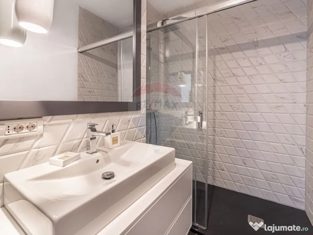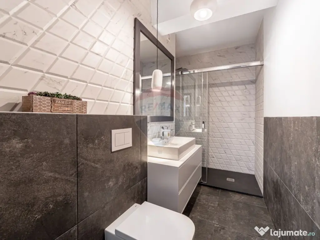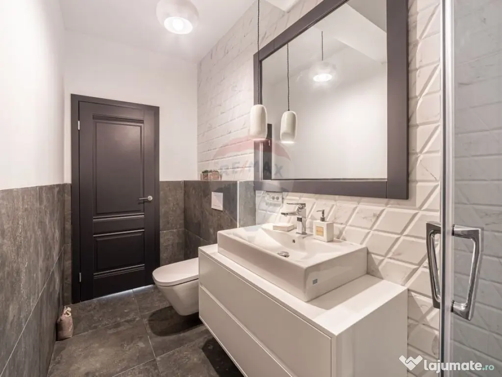 RE/MAX Dynamic vă propune spre vânzare un apartament de tip penthouse modern, mobilat și utilat, cu terasă generoasă, în complexul rezidențial Adora Park, zona UTA. OPORTUNITATE PLATA ÎN RATE: avans 100,000 eur, diferența în rate de 1000 eur lunar cu dobândă de 4% sau 600 eur lunar cu dobândă de 5.5%. Apartamentul se remarcă printr-un design elegant și funcțional, iar suprafața utilă de 82 mp oferă un spațiu generos, bine iluminat, ideal pentru un stil de viață confortabil. Detalii locuință: * cameră de zi spațioasă, cu bucătărie deschisă; * două dormitoare luminoase; * două băi complet echipate; * două holuri functionale; * centrală termică proprie; * încălzire în pardoseala; * sistem wi-fi inteligent; * loc de parcare inclus. La nivelul interiorului, camera de zi se îmbină armonios cu bucătăria, care este complet utilată și echipată cu aparatură modernă, inclusiv plită, cuptor, combină frigorifică, mașină de spălat vase, toate încorporate într-un mobilier de calitate. Tot aici, regăsim o insulă cu sertare, care adaugă un plus de stil și confort, fiind perfectă pentru momentele de gătit șau socializare. Terasa de 65 mp este un alt punct forte al acestui penthouse, oferind suficient spațiu pentru relaxare, fiind un loc ideal pentru a te bucura de priveliștea de la etajul 11. Întregul apartament se distinge prin utilizarea unor tonuri neutre, cu accent pe culori calde și detalii moderne, creând o atmosferă primitoare și sofisticată. Această locuință este o oportunitate excelentă atât pentru cei care doresc să combine confortul unui apartament modern cu avantajele unui spațiu exterior generos, precum și pentru persoanele interesate de investiție. Apartamentul generează o chirie lunară de 800 eur, fiind posibil a fi preluat cu chiriașii actuali. Blocul este construcție nouă, an 2019, cu ambient plăcut, dotat cu 2 lifturi moderne și sistem de supraveghere. Adora Park este poziționat central, aproape de diverse puncte de interes, de mijloacele de transport în comun, magazine, cafenele, clinici, grădinițe, școli etc. Facilitățile complexului sunt: parcare securizată, parc privat, terenuri de sport, locuri de joacă pentru copii. Sunați-mă cu încredere pentru detalii suplimentare și/sau programarea unei vizionări! Confort: 1 Tip imobil: Bloc de apartamente Număr Băi: 2 Posibilitate parcare: Da Nr. locuri parcare: 1