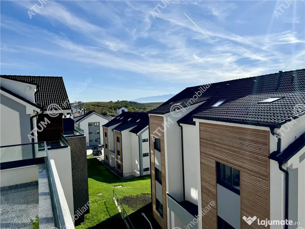 Apartament tip penthouse cu 3 camere decomandate, acesta este situat intr-un ansamblu rezidential nou din Turnisor, Sibiu. Complexul este format din blocuri tip vila, cu regim de inaltime P 2, avand doar 2 apartamente pe nivel, ceea ce asigura un ambient linistit si exclusivist. Locuinta are o suprafata utila de 100.4 mp si este compartimentat eficient: Living ndash; 19.19 mp, Dormitor ndash; 13.72 mp, Bucatarie separata ndash; 7.57 mp, Baie (cu geam pentru aerisire) ndash; 4.98 mp, Hol (spatiu pentru cuier si pantofar) ndash; 7.43 mp, la etaj avem al doilea dormitor 15.58 mp, care beneficiaza de dressing 15.81 mp, baie 6.62 mp si hol 9.09 mp. Pe langa suprafata utila, acesta mai beneficiaza si de o Terasa ndash; 9.42 mp. ln plus, apartamentul dispune de loc de parcare propriu, marcat si delimitat. Predarea apartamentelor se face la cheie sau bineinteles contra cost se pot preda si mobilate utilate, la stadiul de cheie beneficiaza de urmatoarele dotari premium: #10004; Incalzire icirc;n pardoseala #10004; Izolatie termica cu vata bazaltica #10004; Fatada decorativa cu sistem complet de la Caparol #10004; Granit pe casa scarii #10004; Balcoane generoase, hidroizolate si finisate cu granit #10004; Tamplarie PVC (5 camere, 3 foi de sticla) #10004; Jaluzele exterioare electrice pentru toate apartamentele #10004; Sistem de iluminat exterior montat la fiecare balcon #10004; Gresie, faianta, parchet si obiecte sanitare montate #10004; Usa metalica antiefractie la intrare Apartamentul este situat intr-o zona cu acces rapid catre centrul orasului Sibiu, oferind icirc;n acelasi timp o priveliste incantatoare asupra imprejurimilor. Valoarea de achizitie, la cheie, al acestui apartament este de 156.000 euro la care se adauga TVA acceptandu-se si credit ipotecar. ID intern: 2637 Confort: 1 Tip imobil: Casă/Vilă Număr Băi: 2 Posibilitate parcare: Da Nr. locuri parcare: 1