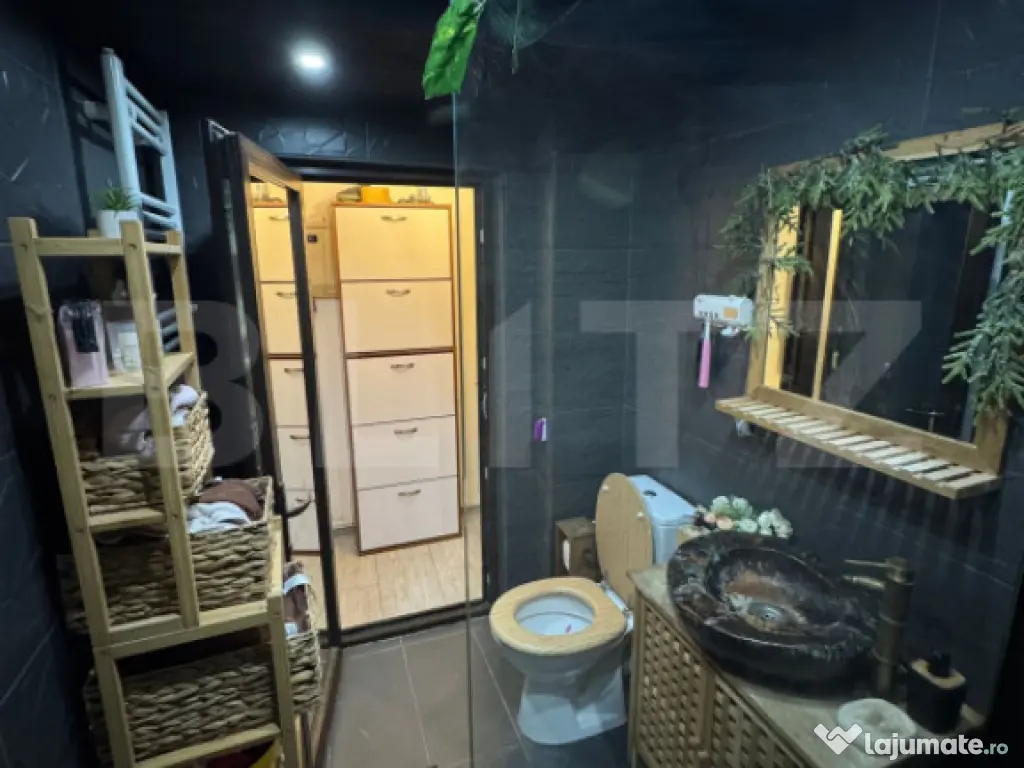 Blitz vă oferă spre vânzare un apartament modern, situat într-o zonă de interes, cu acces facil către mijloace de transport, centre comerciale, școli și alte puncte importante ale orașului. Proprietatea este ideală atât pentru locuit, cât și pentru investiție, beneficiind de finisaje de calitate și dotări premium. Apartamentul este renovat de la zero, fiind înlocuite complet instalația hidro și instalația electrică ignifugă, oferind siguranță și confort pe termen lung. Dotări și beneficii: -Centrală termică Ariston One Condensing Tech -Aer condiționat Beko -Plită electrică -Frigider Gorenje -Mașină de spălat -Mobilă de bucătărie realizată pe comandă din MDF, cu sistem soft close -Pat cu spațiu de depozitare -Televizor Samsung Smart TV, diagonală 170 cm -Televizor Samsung, diagonală 100 cm Locuința se vinde complet mobilată și utilată, fiind pregătită pentru mutare imediată. Compartimentarea eficientă și atenția la detalii transformă acest apartament într-un cămin primitor și confortabil. Pentru detalii și vizionări blitz vă invită să ne contactați telefonic Cod ofertă / ID BLITZ: P165967 Id intern: P165967 Confort: 1 Tip imobil: Bloc de apartamente Număr Băi: 1