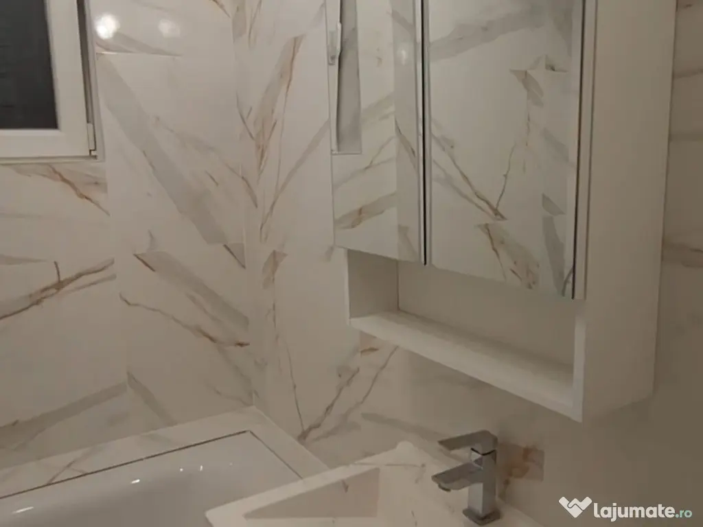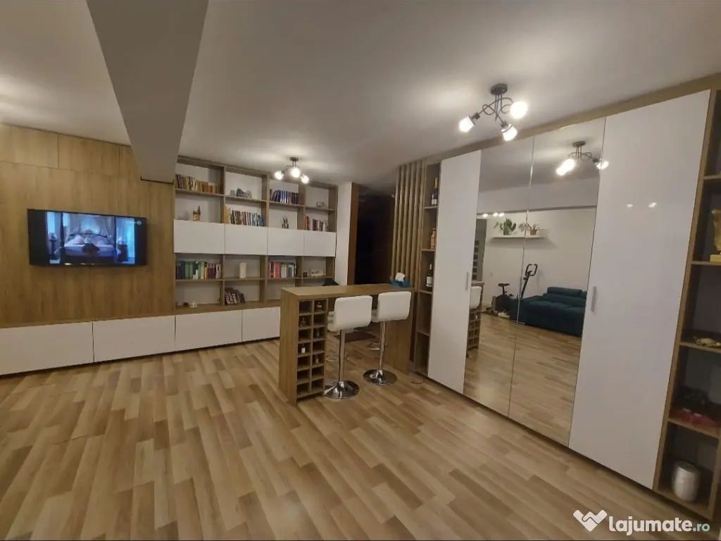 Accesul în apartament se face prin 2 intrări, atât prin scara blocului, cât și prin curte, ce dispune de o poartă auto si una pietonală, care se deschid manual. Suprafața imobilului este de 57,95 mp, și dispune de 1 living generos de 24,58 mp, un dormitor de 12,59 mp, 2 băi, bucătărie complet utilată, cu aparate de calitate și blaturi laminate, 2 dressinguri mari și unul mic.