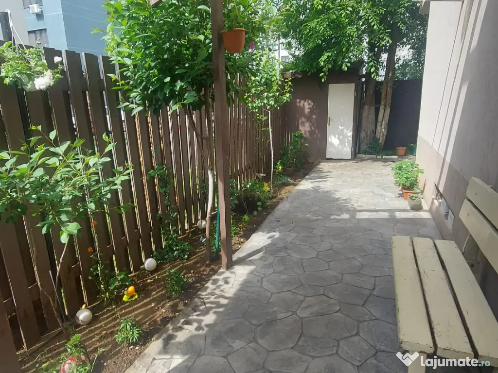 De asemenea, dispune de o curte individuală în suprafață de 79 mp, în care se află loc de parcat mașina, o alee cu flori și pomi fructiferi, care duce spre o căsuță de depozitare, și spre zona de relaxare exterioara în suprafață de 56 mp. Aici vă puteți bucura de un grătar cu prietenii în intimitatea pomilor care înverzesc primăvara.