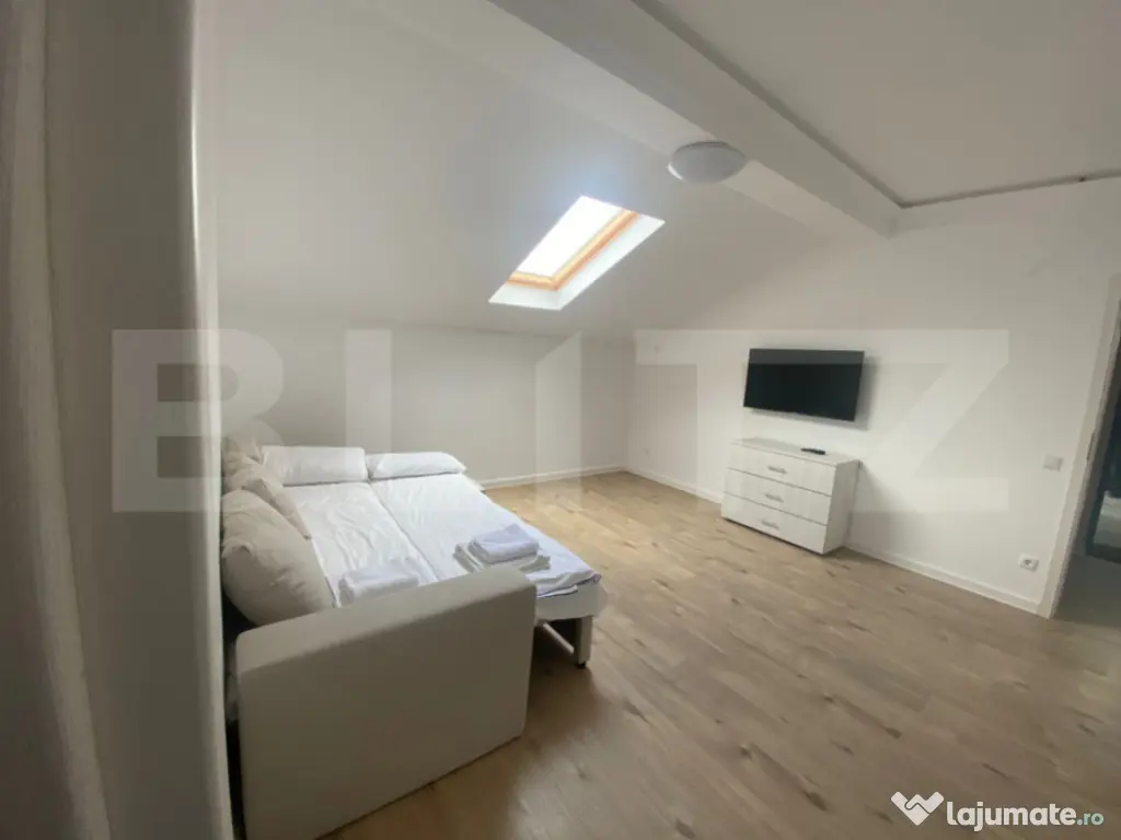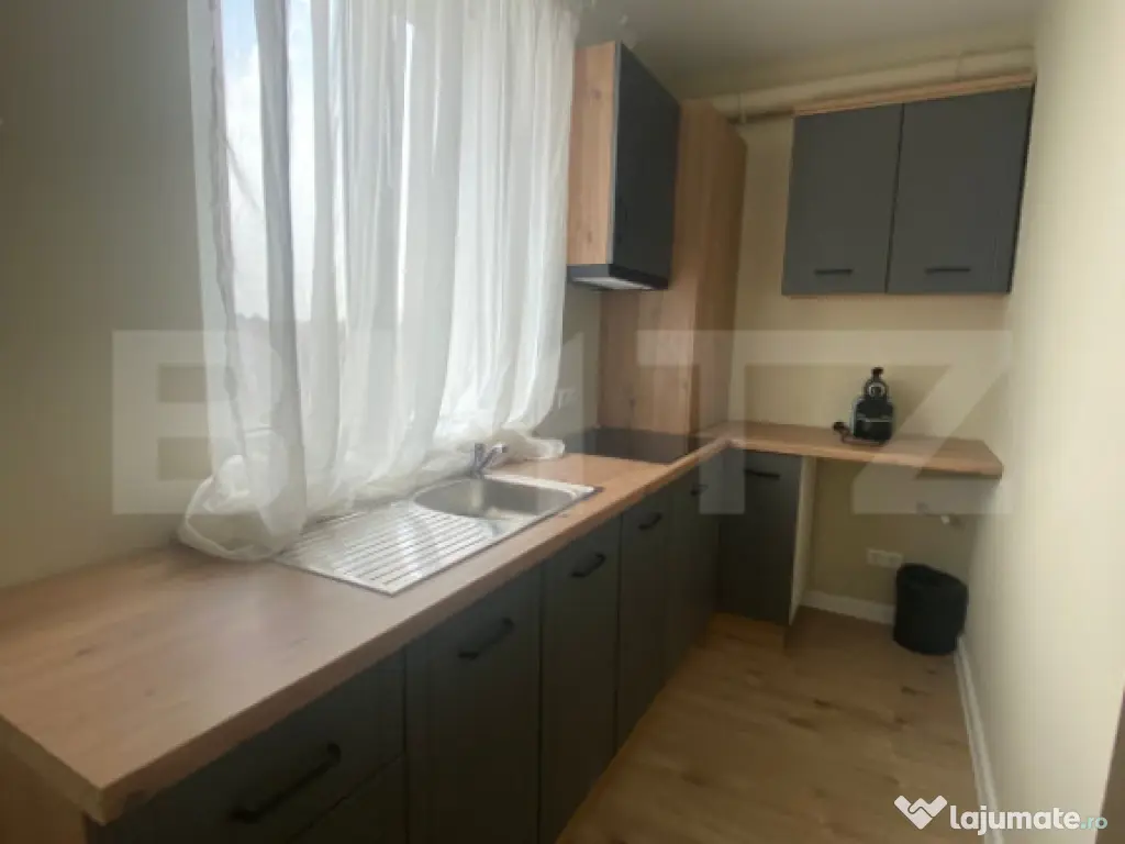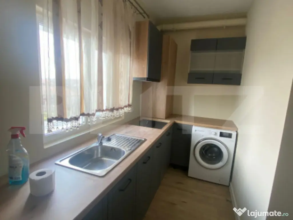 Blitz vă propune spre închiriere patru apartamente moderne cu doua camere, situate într-un bloc din Ghiroda, complet mobilate, cu suprafețe de aproximativ 50 mp, amplasate la parter, etajul 1 și etajul 2. Apartamentele sunt luminoase și bine compartimentate, ideale pentru familii sau cupluri, oferind un nivel ridicat de confort. Locuințele dispun de dormitor cu dulapuri, bucătărie open-space complet utilată, zonă de living dotată cu canapea și TV, baie și hol generos, cu multiple spații de depozitare. Apartamentele sunt gata de mutare imediată și oferă toate facilitățile necesare unui trai confortabil. De asemenea, acestea dispun de locuri de parcare în fața blocului. ???? Prețurile sunt cuprinse între 400 și 500 euro/lună, fiind negociabile, în funcție de apartament și perioada contractuală. Pentru mai multe detalii și pentru programarea unei vizionări, vă invităm să ne contactați. Cod ofertă / ID BLITZ: P163435 Id intern: P163435 Confort: 1 Tip imobil: Bloc de apartamente Număr Băi: 1