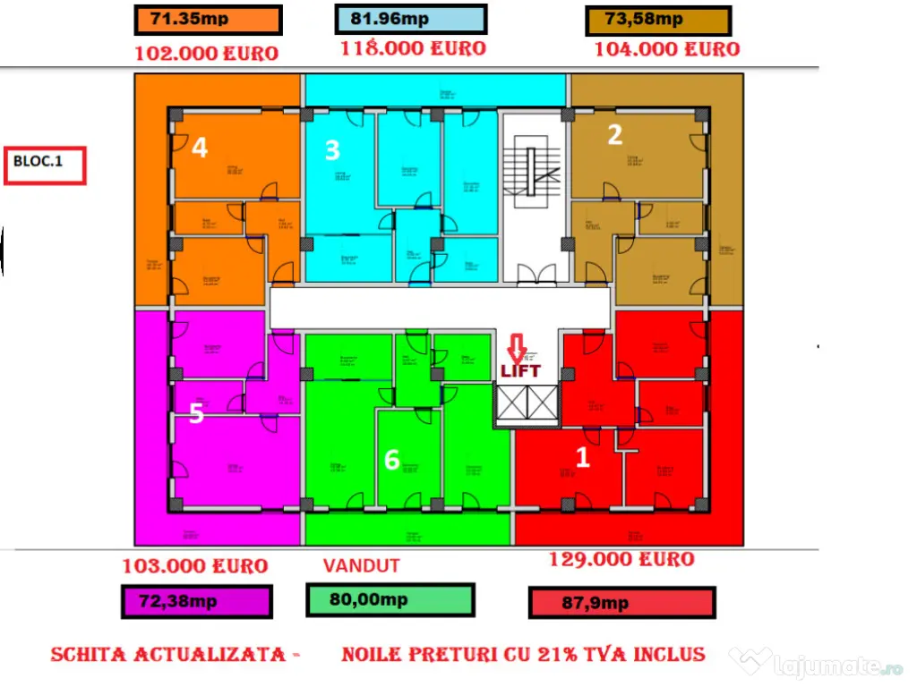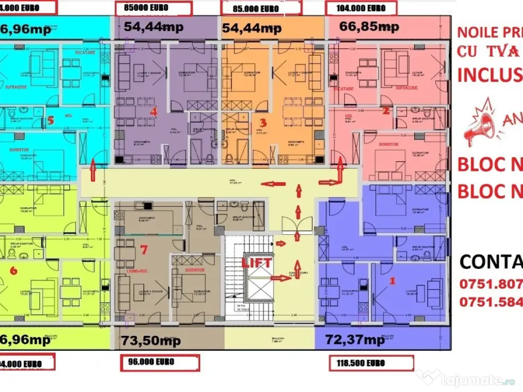 ULTIMILE - APARTAMENTE - NOI din BLOC 1️⃣ si BLOC 2️⃣ Dobrogea Towers ☘️CEL MAI NOU COMPLEX DIN Tulcea URMEAZA SA FIE RECEPTIONAT ! ⁉️CE GASITI DIFERIT LA NOI ? ▪️apartamente cu bucatarii inchise sau semiinchise ▪️constructie solida si bine construita ▪️materiale de super calitate ▪️studiouri si apartamente cu 2 -3 camere ▪️bai spatioase si living generos ▪️termopane TRIPAN tehnologie noua ▪️instalatia electrica pe cupru ▪️prize si intrerupatoare inteligente GEWISS ▪️instalatia sanitara de calitate ▪️balcoane din sticla securizata ▪️usa metalica solida ▪️centrala pe gaz ARISTON ▪️toate utilitatile trase (gaz, curent, apa) functionale ▪️PARCARI la demisol ▪️lift de la demisol ▪️BLOCUL ARE LIFT pana la ultimul etaj casa scarii este luminoasa si spatioasa cu oglinzi mari ▪️scari din granit si fier forjat ▪️intrare usoara ▪️parcari disponibile si in fata blocului . =Complexul are în proiect LOC DE JOACA si PARCARI =PREDAREA SE FACE LA "ALB " mai exact (FARA : gresie, parchet, faianta si usi interioare) =PRETURI DISPONIBILE PRETUL INCLUDE 21% TVA AVEM URMATOAREA GAMA DISPONIBILA 2 camere 55mp= 85.000E 2 camere= 60mp= 96.000E 2 camere= 67mp 104.000E 2 camere = 72mp=118.500E 2 camere =72mp=102.000E 3 CAMERE =82mp= 118.000E 2 camere =73mp= 103.000E 3 CAMERE = 88MP = 129.000E Daca esti interesat programeaza o VIZITA 0751 584 242 ,0751807190 LOCATIE: in spate la ISU (POMPIERI ) sau RAC 74 (str. Barajului ) ▪️PARCARI : supraterane : 4000 euro si subterane: 12.000 Euro PLATA: CASH, CREDIT IPOTECAR AGENTIA NU VA PERCEPE COMISION ! PENTRU MAI MULTE DETALII NU EZITATI SA NE CONTACTATI ! Confort: Lux Tip imobil: Bloc de apartamente