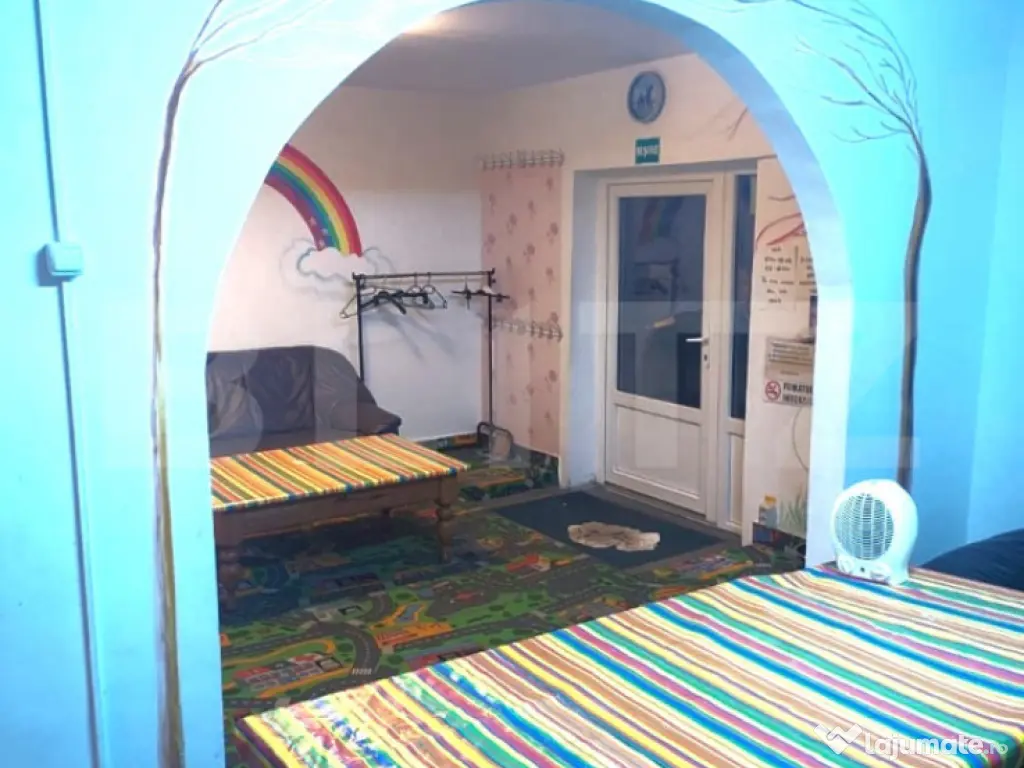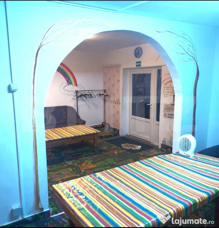 Compartimentare: 4 camere + hol generos + dependințe, ușor de adaptat fie pentru activitate comercială, fie pentru locuit.