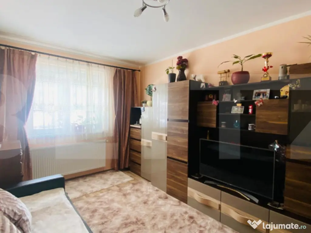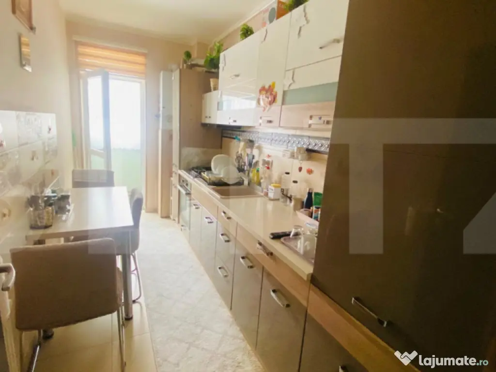 Blitz Imobiliare va prezinta un apartament cu 3 camere, expresia confortului si functionalitatii. Situat pe o starda linistita la doar 1 minut de mers pe jos de gradinita/scoala, la 3 minute de magazine si mijloace de transport in comun, locuinta este exceptionala pentru un cuplu cu copii sau o niste bunici implicati. Locuinta este amenajata cu bun gust si responsabilitate, firecare spatiu fiind gandit pentru beneficiu maxim. Particularitatea este data atat de luminozitatea bnaturala obtinuta prin orientarea pe 2 parti, E/V, cat si de depstarirea celor 2 dormitoare de catre livingul transpus, astfel incat intimitatea este garantata. Camera de zi este inteligent delimitata de hol prin niste usi glisante, care, odat deschise, maresc spatiul. Confortul termic este asigurat prin centrașa termica pe gaz, instalatie de climatizare, rulouri exterioare electrice. Cod ofertă / ID BLITZ: P161111 Id intern: P161111 Confort: 1 Tip imobil: Bloc de apartamente Număr Băi: 1 Nr. locuri parcare: 1