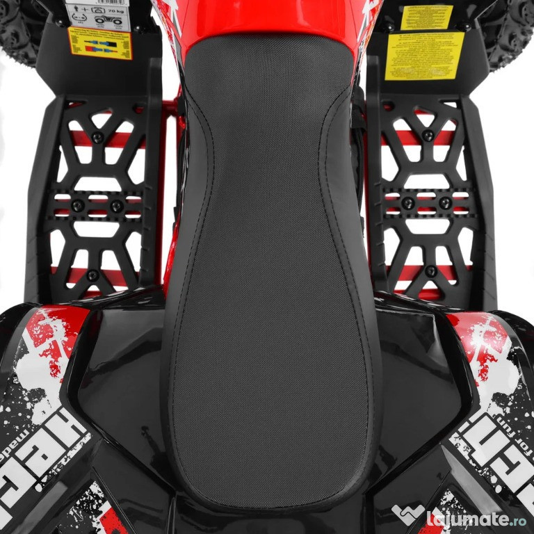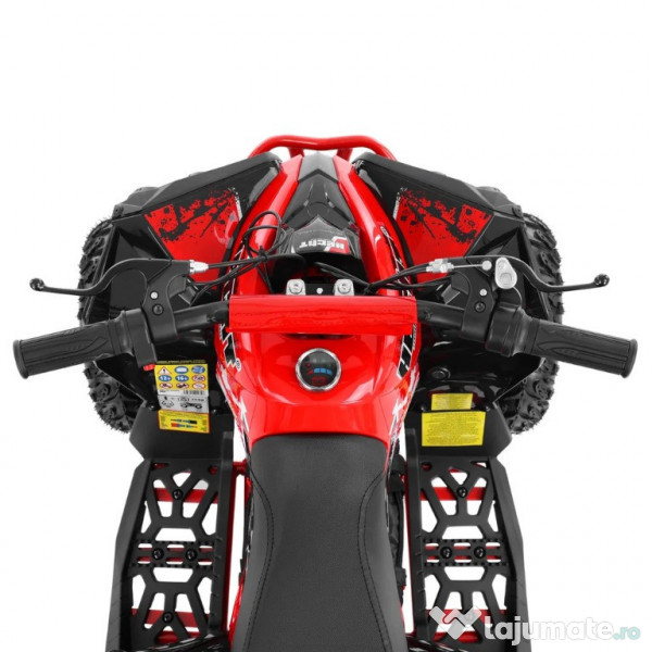 Benficiati de GARANTIE 24 Luni Transport GRATUIT Pentru comenzi si info contactati-ne 0729189471 ATV electric Kinder Eco Wolf , motor 1060W 36V pozitionat pe punte 1 motor electric fara perii, de putere 1060W la tensiune 36V 1 BATERII DETASABILA, reincarcabila de 36V 12Ah Pneuri de înaltă calitate Sistem de iluminat cu LED, actionat din buton Sistem de averitizare sonora, claxon actionat din buton Schimbator de viteză cu 3 viteze( selectabile cu cheie) Treapta 1: viteza de pana la 8 km/h Treapta 2 : viteza de pana la 20 km/h Treapta 3 : viteza de pana la 35 km/h Comutator pentru schimbarea sensului de mers inainte/ inapoi Avertizare: pozitia atv-ului sa fie pe repaus cand se actioneaza comutatorul Produsul include Încărcător 36V Indicator volataj baterie Timp de încărcare 6-8 ore 2 Amortizoare fata punte fata 1 Amortizor central punte spate Sistem de franare prin maner, sufa si disc Anvelope față / spate 14x5.00-6 | 14x5.00-6 Înălțime scaun v. podea 500 mm Garda la sol 170 mm Greutate proprie 56,5 kg Greutate total admisa 65 kg Produs recomanda pentru copil 4-10 ani Dimensiunile produsul montat 1180 x 700 x 710 mm Puteti cumpara acest produs in RATE, fara dobanda, cu CARD de cumparaturi de la banci partenere precum: Raiffeisen / Star BT / BCR / BRD Finance / Alpha Bank /First Bank. Pentru comenzi si info contactati-ne 0729189471 SAU IN RATE CU DOBANDA PRIN TBI PAY.