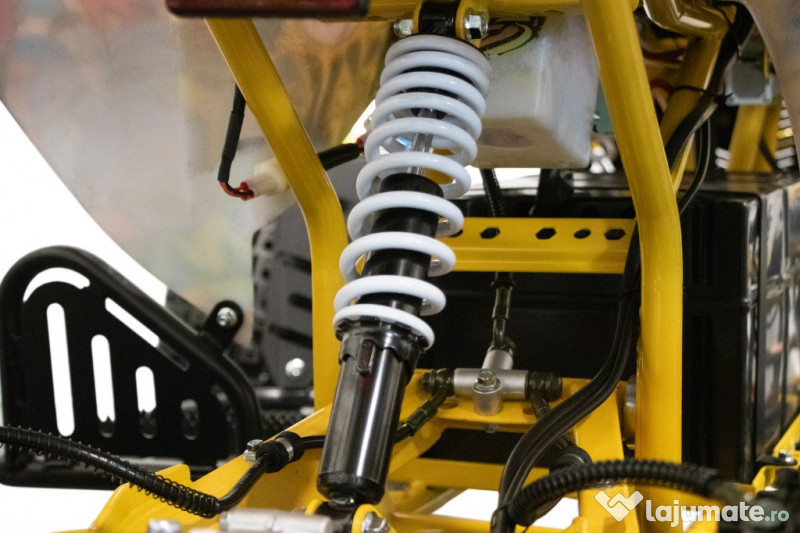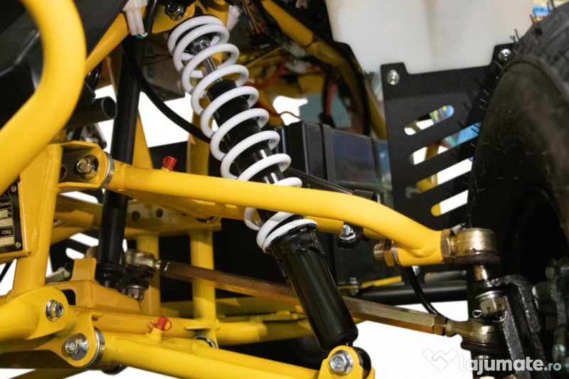 Benficiati de GARANTIE 24 Luni Transport GRATUIT Pentru comenzi si info contactati-ne 0729189471 ATV electric NITRO EcoWarrior SPORT 1000W 48V 20Ah cu DIFERENTIAL, graffiti 1 Motor electric de putere 1000W la tensiune 48V Tracțiunea punte spate printr-un diferențial Display electronic cu multiple functii: - indica viteza de rulaj - inregistrare km parcursi - indica nivelul bateriei - indica treapta de viteza Pornire/oprire prin telecomanda sau cheie Amortizoare individuale si reglabile, punte fata Amortizor central reglabil, punte spate Comutator pentru schimbarea sensului de mers inainte/inapoi Grilaj metalic spate pentru depozitare Grilaj metalic fata pentru protectie, in caz de impact Sistem franare hidraulic cu disc, punte spate Sistem franare cu tambur, punte fata Viteza maxima 30 km/h, reglabila Sistem limitare viteza in 3 trepte: Treapta Eco - 8 km/h Treapta Medie - 16 km/h Treapta Sport 30km/h Acumulator reincarcabil si detasabil 48V 20Ah format din 4 baterii 12V 20Ah (6-DZM-20) Anvelopă față 19x7.00-8 Anvelopă spata 18x9.50-8 Greutatea atv-ului 115kg Capacitate de incarcare 150 kg Dimensiunile vehiculului în mm LxWxH 1560 x 1040 x 930 Înălțimea scaunului de la Etajul 680 mm Distanța scaunului de picior 430 mm Gardă la sol 200 mm Puteti cumpara acest produs in RATE, fara dobanda, cu CARD de cumparaturi de la banci partenere precum: Raiffeisen / Star BT / BCR / BRD Finance / Alpha Bank /First Bank. Pentru comenzi si info contactati-ne 0729189471 SAU IN RATE CU DOBANDA PRIN TBI PAY.