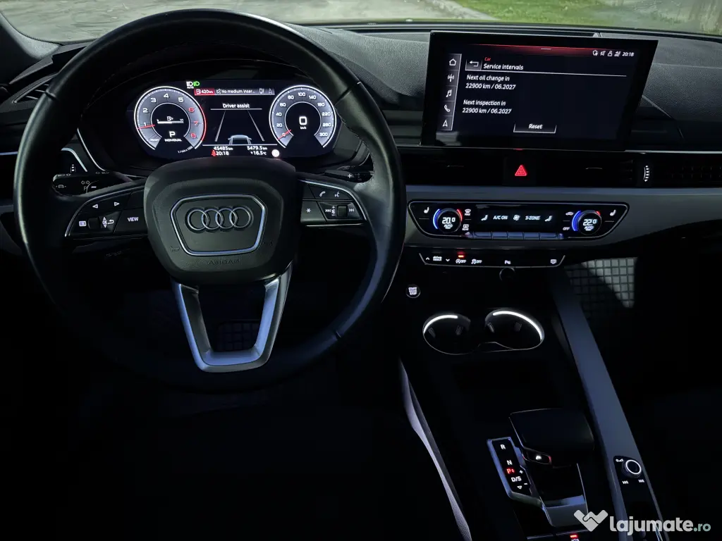 Persoana fizica si prim proprietar, nefumator, vand Audi A4 35 TFSI S tronic Advanced, 2L, benzina, cod model 8WCB7G21, configurat personal in reprezentanta, 45700 km parcursi pana in prezent, in usoara crestere.
