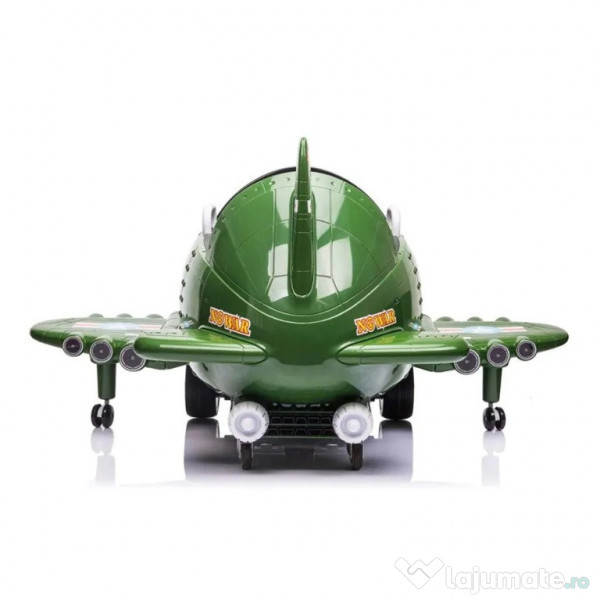 Benficiati de GARANTIE 24 Luni Transport GRATUIT Pentru comenzi si info contactati-ne 0729189471 Avion electric pentru copii Kinderauto BJ20201 2x 30W 12V, telecomanda 2 Motoare electrice de putere 30W, fiecare la tensiune 12V Echipata cu 2 Baterii 6V 4.5Ah, total 12V 4.5Ah Pornire/Oprire din Buton Scaun din plastic, confortabil pentru copil Roti moi din cauciuc EVA, silentioase si confortabile Functie drift pe modul High Speed Eliceea este rotativa, se v-a roti manual sau prin putere vantului. Functie de rotire 360 grade cu ajutorul unor roti auxiliare in partea din spate Music player Mp3 cu conexiune Aux, port USB si slot card MiniSD 2 manete pentru control directie si sens de mers Divertisment muzical si efecte sonore de bombardament si tragere Aripile se pot plia Sistem de iluminat cu LED Pornire LENTA pentru confortul copilului Oprire LENTA pentru confortul copilului Produsul include INCARCATOR si TELECOMANDA CONTROL PARENTAL prin telecomanda de la distanta 3 nivele de viteza selectabile din telecomanda Masinuta mai poate fi ghidata manual de catre copil Indicator volataj baterie Conexiune Mp3 prin cablu jack Centura de siguranta Greutate proprie 14.5 Kg Greutate total admisa 44.5 kg Produs recomanda pentru copil 24 - 60 de luni Dimensiunile produsul montat 100 x 124 x 62 cm Puteti cumpara acest produs in RATE, fara dobanda, cu CARD de cumparaturi de la banci partenere precum: Raiffeisen / Star BT / BCR / BRD Finance / Alpha Bank /First Bank. Pentru comenzi si info contactati-ne 0729189471 SAU IN RATE CU DOBANDA PRIN TBI PAY.