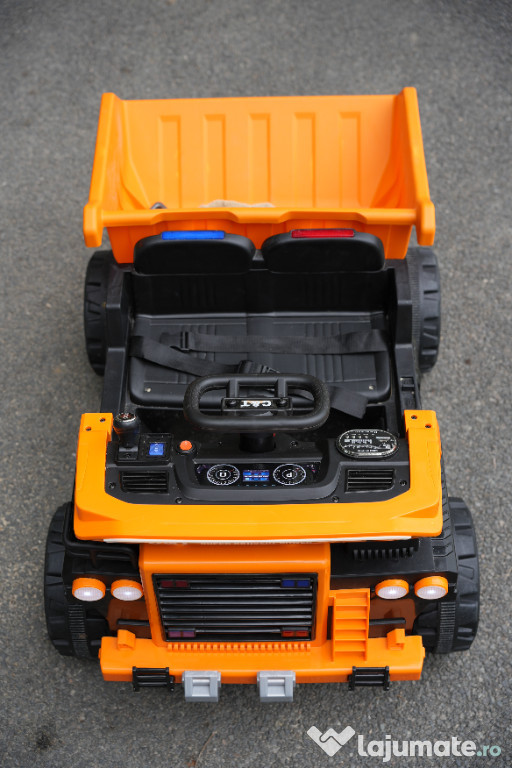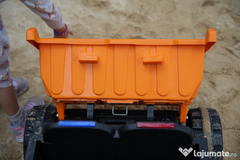 Benficiati de GARANTIE 24 Luni Transport GRATUIT Pentru comenzi si info contactati-ne 0729189471 Basculanta electrica Kinderauto BJDQ818 echipat PREMIUM Roti MOI din cauciuc EVA, silentioase si confortabile Scaun tapitat cu piele ecologica, cofortabil Echipata cu 2 motoare de putere 30W fiecare Sistem de iluminat cu LED Comutator pentru schimbarea sensului de mers inaite / inapoi Cuva actionata electric din maneta Pornire LENTA pentru confortul copilului Oprire LENTA pentru confortul copilului Music player Mp3 multifunctional, echipat cu port USB, Bluetooth Indicator voltaj baterie Baterie reincarcabila de 12V 10Ah Incarcator disponibil in pachet 12V 1Ah Produsul include INCARCATOR si Telecomanda Control parental de la distanta Masinuta se mai poate ghida manual de catre copil Volan echipat cu butoane pentru activare efecte sonore Centura de siguranta Greutate produs 18 Kg Greutate total admisa 48 Kg Greutate utilizator de pana la 30 Kg Produs recomandat pentru copii 36-60 Luni Dimensiunile produsului montat 110 * 68 * 60 cm Puteti cumpara acest produs in RATE, fara dobanda, cu CARD de cumparaturi de la banci partenere precum: Raiffeisen / Star BT / BCR / BRD Finance / Alpha Bank /First Bank. Pentru comenzi si info contactati-ne 0729189471 SAU IN RATE CU DOBANDA PRIN TBI PAY.