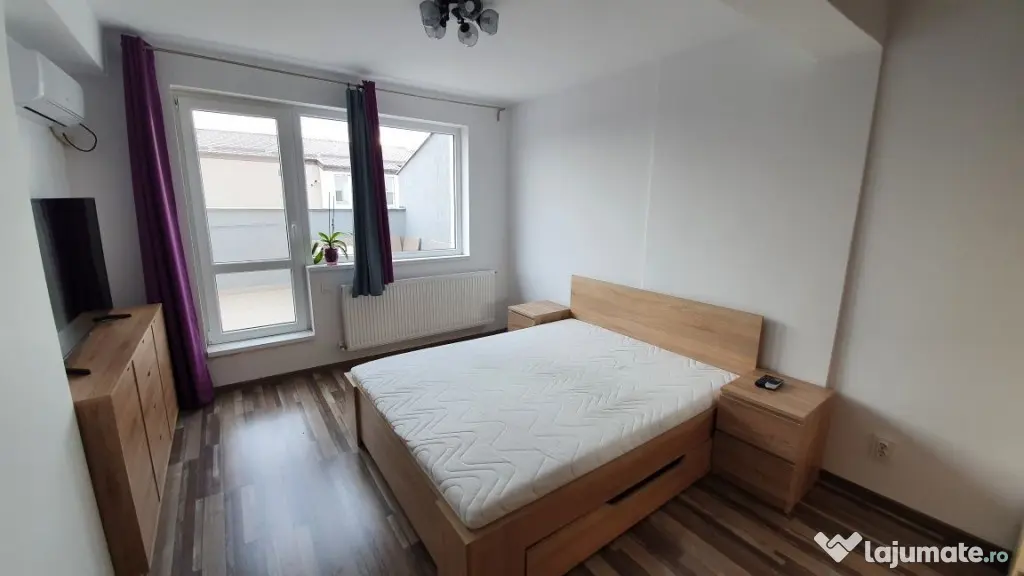 Imobilul are o suprafata de 37 m² utili si o terasa de 17 m², dispune de pat, dressing, doua televizoare smart, canapea extensibila, mobilier complet bucatarie cu spatii depozitare, electrocasnice noi - plita, hota, cuptor electric, frigider, aer conditionat si masina de spalat rufe.
