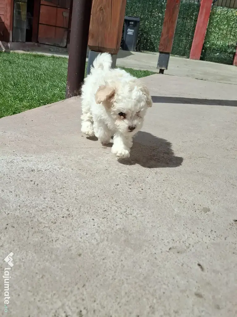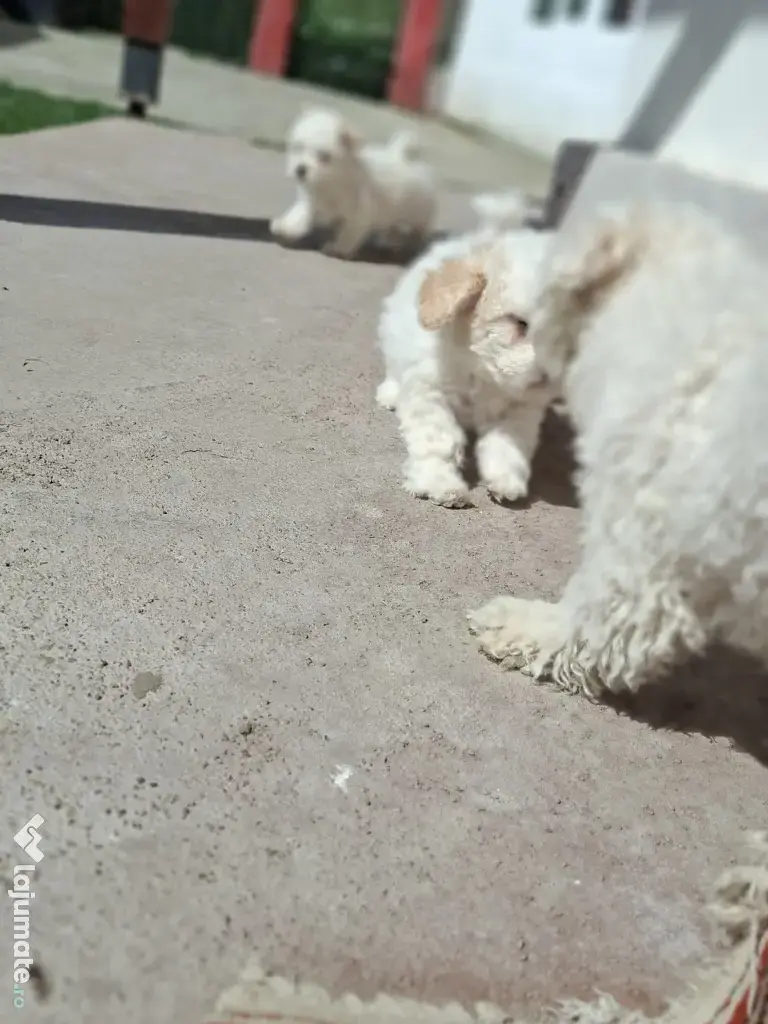 Bichon maltez o fetiță si un băiețel își pregătiți pentru o casa noua