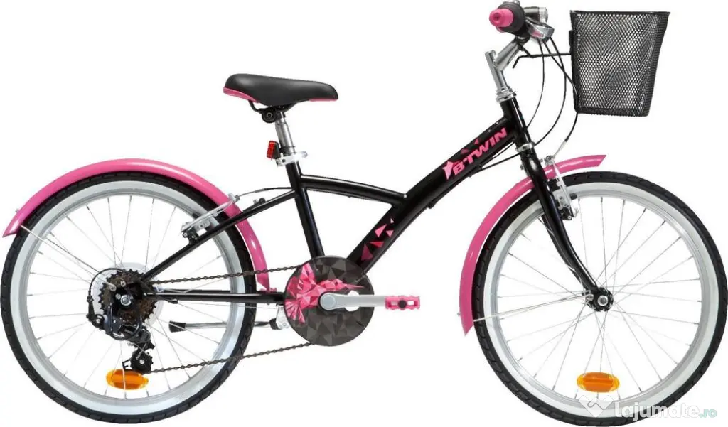 Vand bicicletă model Original 500 20'' copii 6-9 ani (120 to 135 cm) - marca BTWIN, cu 6 viteze. Dețin și coșulețul de metal din poza comercială atașată. Bicicleta este utilizată și este în stare bună, fără defecte.