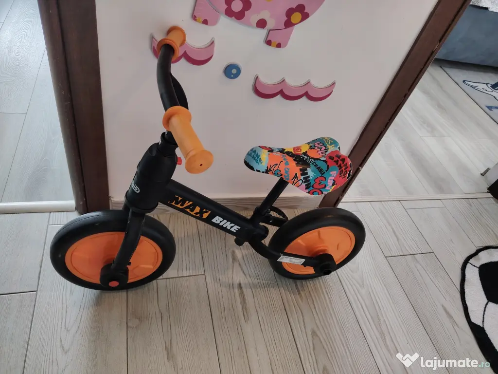 1 bicicletă cu roți ajutătoare si pedale detasabile