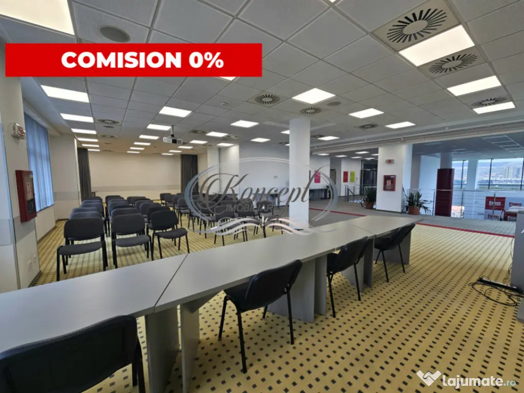 Koncept Imobiliare va propune spre inchiriere un spatiu de birouri situat in cladirea Power Business Center, una dintre primele cladiri clasa A din Cluj-Napoca, pozitionata strategic in zona semicentrala a orasului. Accesul facil atat pietonal, cat si auto, impreuna cu proximitatea fata de centrul orasului, recomanda imobilul companiilor care isi doresc vizibilitate si conectivitate. Spatiul disponibil are o suprafata utila de 179 mp, dispus in open space, cu inaltime interioara de pana la 3.5 metri si 2 grupuri sanitare proprii. Exista posibilitatea de recompartimentare, in functie de necesitatile chiriasului. Parcarea este generoasa, putand fi inchiriate pana la 15 locuri de parcare suplimentare la pretul de 120 euro + TVA fiecare. Interiorul este finisat cu pereti in lavabil alb, mocheta pe pardoseala si tavan fals casetat. Sistemul tehnic include instalatii 4 tevi pentru incalzire si racire, ventilatie naturala prin ferestre cu deschidere, acces pe baza de cartela, receptie si supraveghere video. Cladirea este recunoscuta pentru sistemul sau “open system” care permite adaptarea instalatiilor conform nevoilor chiriasilor. Suprafata se preteaza pentru multiple activitati precum birouri corporate, sala de fitness, activitati de tip workshop, cursuri pentru copii sau zone de coworking. In plus, chiriasii beneficiaza de acces la sala de evenimente a cladirii la un cost preferential, cu o capacitate intre 30 si 150 de persoane si terasa panoramica cu vedere 360 grade asupra orasului. Pentru informatii complete, programarea unei vizionari sau pentru a afla oferta noastra completa va stam la dispozitie telefonic, prin e-mail sau la sediul agentiei noastre, pe str. Aviator Badescu, nr. 19, Cluj-Napoca. Id intern: P20845 Suprafaţă totală: 205 m² An finalizare construcție: 2007 Stadiu construcţie: Finalizat Clasă birouri: A Comision cumpărător: 0% Tip imobil: Bloc de apartamente
