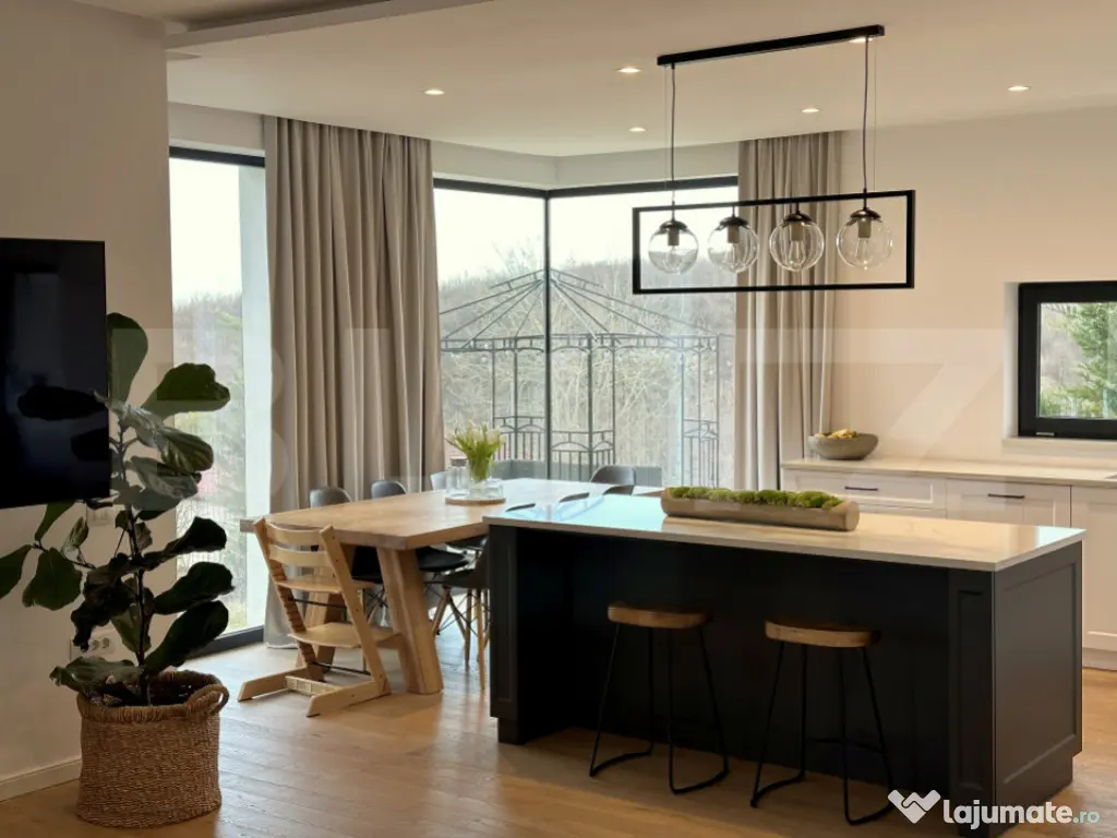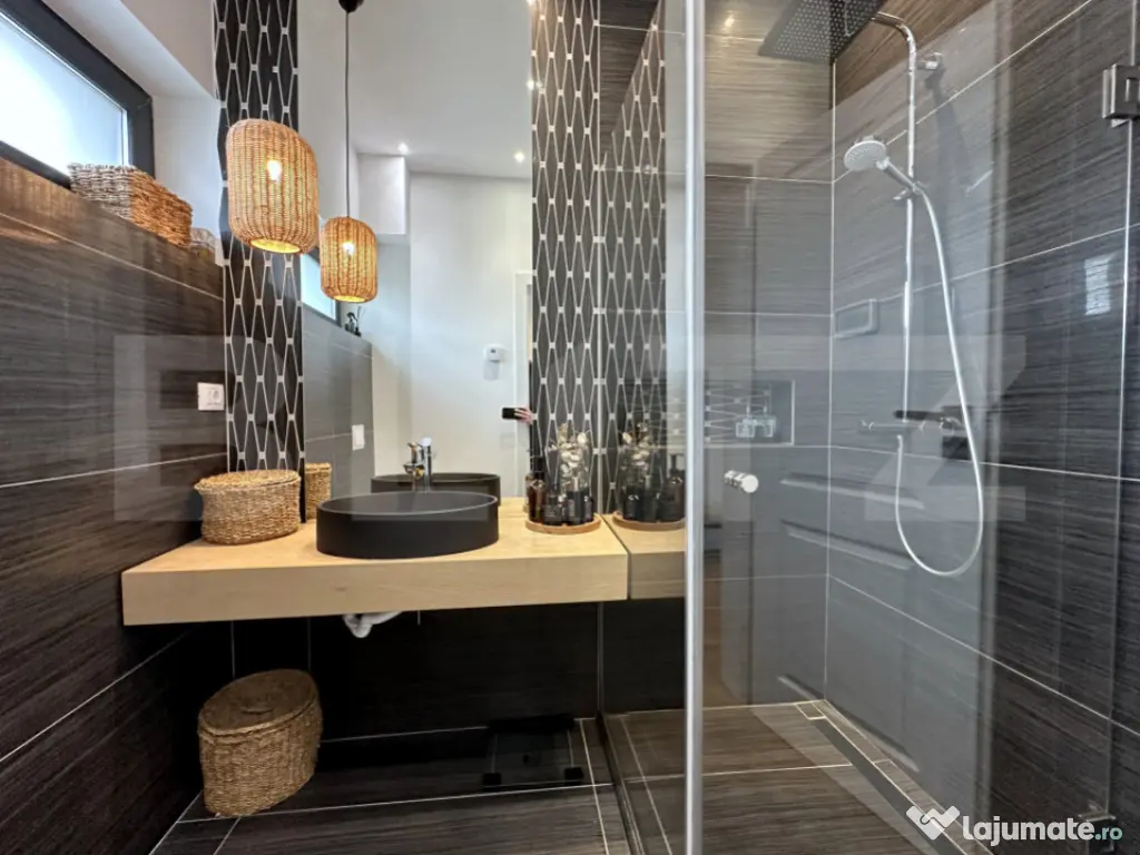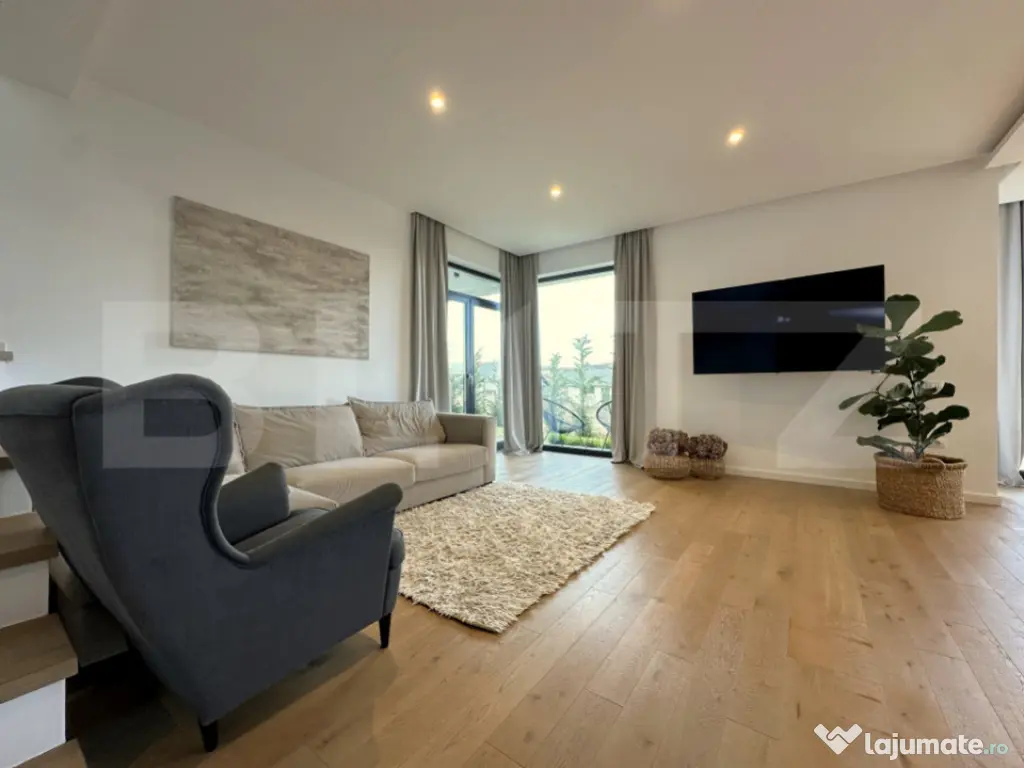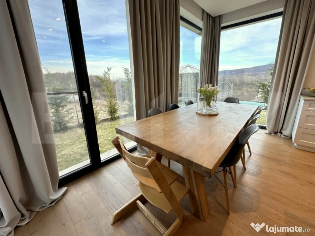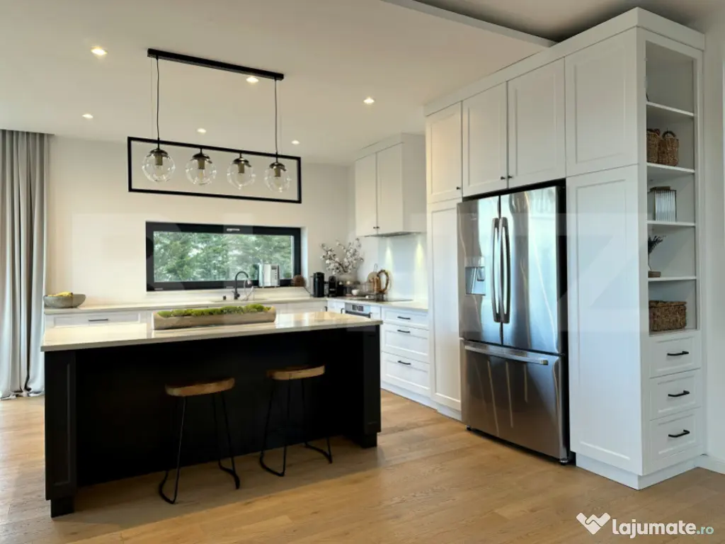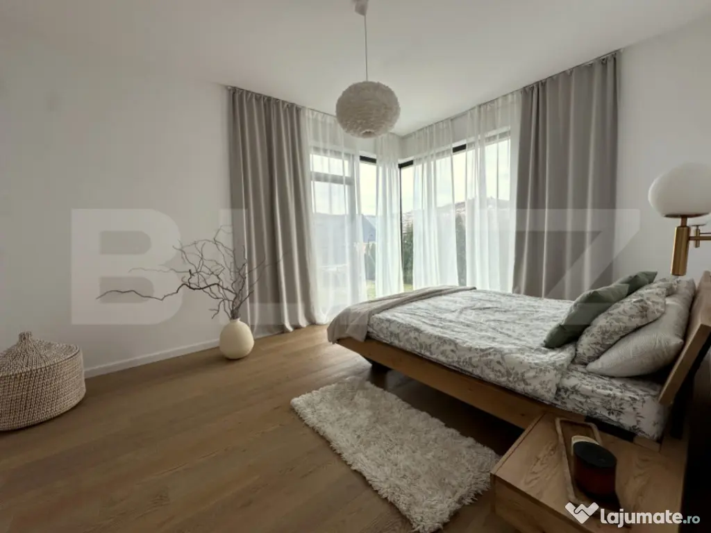 Casă individuală P+E | 174 mp utili | Teren 500 mp | Stradă privată BLITZ vă propune în EXCLUSIVITATE o casa „la cheie”, cu arhitectură modernă, ideală pentru o familie care își dorește spațiu, liniste, intimitate și o calitate superioară a construcției. Proprietatea este ideală pentru cei care apreciază confortul unei case fără să renunțe la proximitatea orașului. Cu o suprafață utilă de 174 mp (cu garaj inclus) și amplasată pe un lot de teren de 500 mp, casa este compartimentată eficient și armonios: PARTER: - Hol intrare cu spatiu dressing - Living spațios cu bucătărie open-space și zonă de dining - Dormitor matrimonial - Baie - Terasa de vară in suprafată de 24 mp - Garaj integrat ETAJ: - 2 dormitoare spatioase - 1 Birou perfect pentru work-from-home - 1 Baie - 1 Terasă de 74 mp (neamenajata momentan) POD: ideal pentru extra spatiu depozitare ATUURI care fac diferența: - Stradă privată – trafic redus, siguranță și intimitate - Zonă extrem de liniștită, cu vecini de calitate - Infrastructură pregătită pentru piscină exterioară. - Locație avantajoasă - doar 10 minute de Cluj-Napoca - “Move-in-ready” - casă la cheie, disponibila imediat pentru mutare! SPECIFICATII TEHNICE premium: - Zidărie din BCA Ytong 40 cm + izolație polistiren 10 cm - Izolație pod cu polistiren 15 cm EPS 100 - Placă beton armat peste etaj si acoperis cu tigla de beton - Geamuri panoramice Teraplast, 6 camere, 3 foi de sticlă - Pompă de căldură 16 kW (supradimensionată deci eficientă indiferent de temperatura exterioară) cu incălzire în pardoseală - Curent TRIFAZIC - Sistem de irigație gazon cu temporizator - Microstație de epurare - Infrastructură pregătită pentru șemineu DESIGN & FINISAJE: Proprietatea este finisată în stil contemporan cu influente clasice, si accent pe lumină naturală precum și spații aerisite. Geamurile mari panoramice oferă o conexiune superbă cu exteriorul, iar electrocasnicele, blaturile de cuarț, mobilierul sau parchetul stratificat completează eleganța și confortul interior. Această proprietate nu este doar o casă – este un spațiu gândit pentru confort, siguranță și calitate pe termen lung! Programează o vizionare și descoperă diferența! Cod ofertă / ID BLITZ: P164539 Id intern: P164539 Număr niveluri imobil: 1 Număr Băi: 2 Nr. locuri parcare: 1 Curent Apă