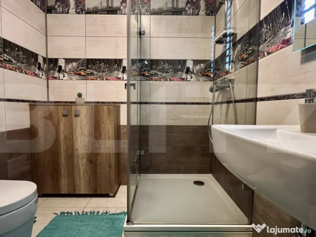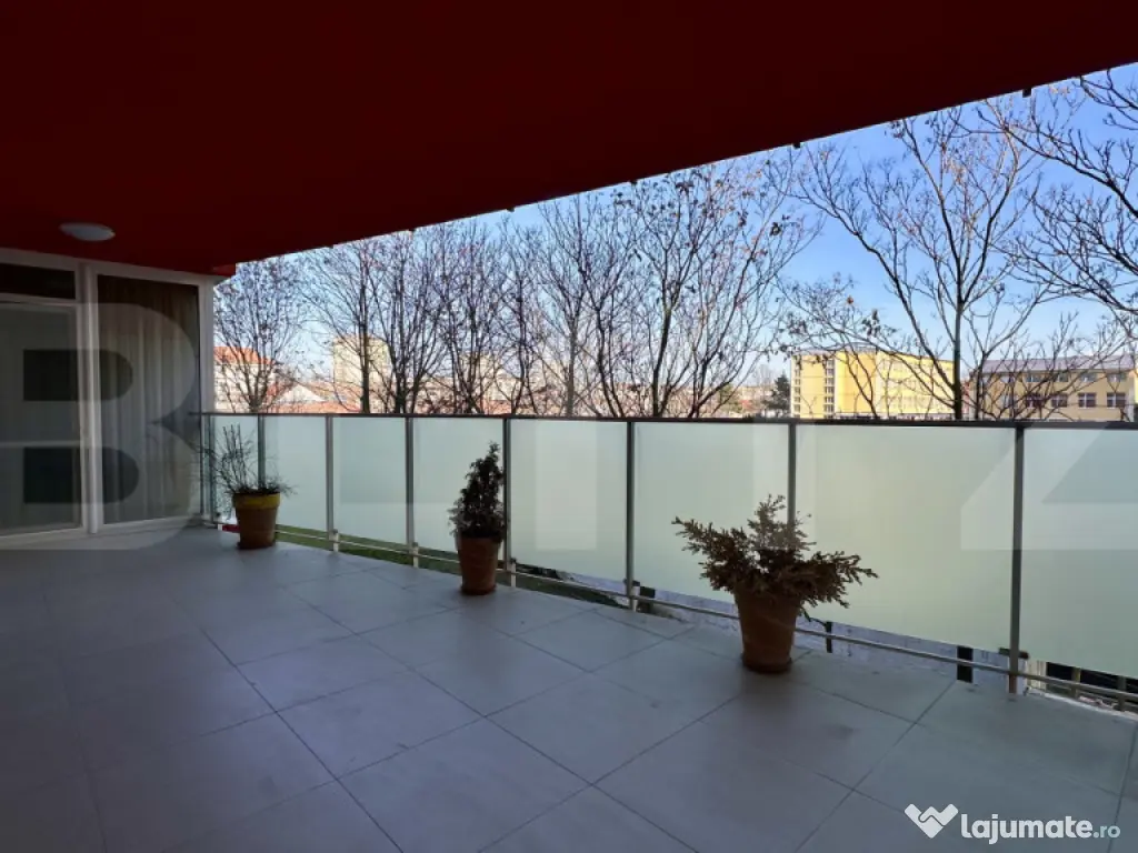 Bloc nou, 3 camere, 2 băi, terasă 23 mp, mobilat și utila