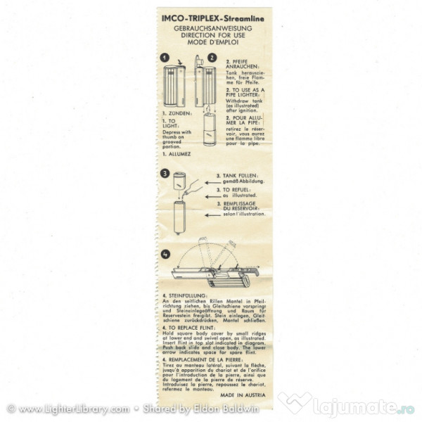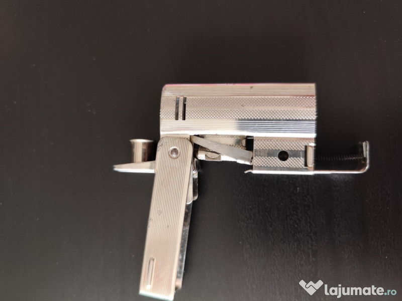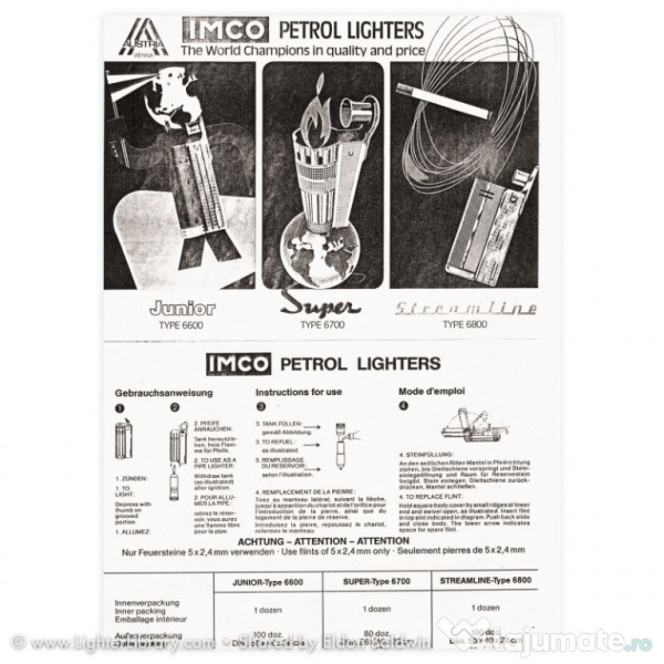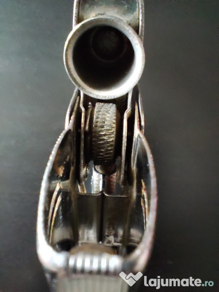 Istoria produsului : Bricheta Imco, Triplex Streamline 6800, stare perfectă de funcționare, fabricată în Austria, produsă în 1955-1956. După catalog Imco, fiind prima serie Streamline cu pârghia de sustinere a capacului care antrenează rotița, (aprindere automată), marcată cu una din cifrele de producție ( 1, 2, sau 3), fiind versiunea de tranziție între modelul 6700 și 6800 și denumită de colecționari „Triplex Streamline transitional type”. Un exemplar rar, care are tipărită inscripția TRIPLEX pe ștampilă alaturi de codul produsului 6800, marca IMCO și stilul STREAMLINE, fiind lot mic experimental, nu a fost model fabricat în serie, practic un mic ,,hibrid" între 6700 și 6800, marcajul de origine nefiind obligatoriu la export. În acea perioadă, IMCO nu aplica marcajul de țară pe modelele destinate pieței europene, doar pe cele exportate în SUA după 1958. Zimții sunt mari, rari și bine profilați, cu un unghi ușor rotunjit la bază. Această formă apare numai la seriile timpurii de Streamline (1955–1956), adică în prima generație a matriței 6800. Are raritate ridicată, fiind clasificată R2-R3. Stare excepțională raportat la vechimea aproximativă de 70 de ani. Singura intervenție asupra ei a fost curățatea, gresarea zonelor în care există frecare, schimbarea cremenei, și încărcarea cu benzină pentru proba. Cremenea (piatra) și combustibilul este Zippo, Vata a fost in brichetă. Fitilul a fost schimbat, deoarece, cel actual este scurt și nu transporta bine combustibilul. Marca „IMCO” este deţinută acum de Windmill Co., Ltd. (Japonia) care a externalizat producția în China, posibil către „Kunming IMCO Trade Co., Ltd.” (posibil). Prețul este NEDISCUTABIL și predarea personală. Gratuit flacon combustibil și pietre.