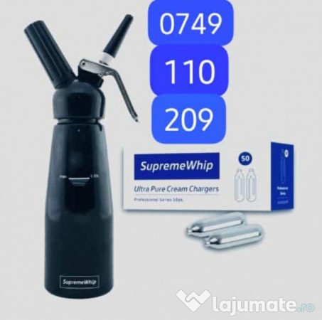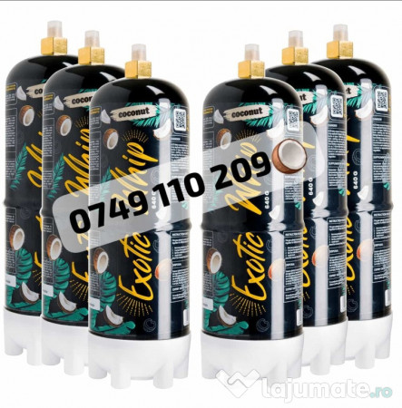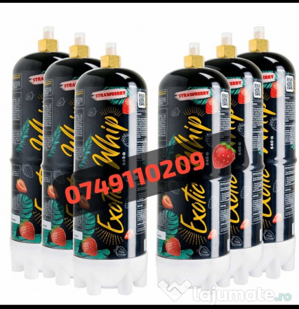 *** SIFOLUX CATERING SUPPLIES ESTE FURNIZOR AUTORIZAT DE EXOTIC WHIP ÎN ROMÂNIA!*** *NON-STOP!* NOU: Aromă Cocos/Căpșuni! (+10 lei) *Ridicare/Livrare la domiciliu* contracost. Citește mai jos pentru mai multe informații! Produsele sunt originale și de calitate superioară! Preț 1-5buc = 199.99 Ron/buc Prețurile pentru revânzători sunt următoarele: **CANT. 6 buc (1bax) = 999.99 Ron ** CANT. 12 buc (2 bax) = 1,920 Ron **CANT. 18 bucăți (3 bax) = 2,700 Ron Butelie de azot Exotic Whip, pentru umflat baloane, ideal pentru petreceri Capacitate: 640grame (echivalentul a 85+ capsule N2O standard, însă gazul din butelii este mult mai puternic, plăcut la gust, curat și lipsit de multe chimicale nocive care se regăsesc în capsulele normale). Posibilitate de livrare la domiciliu sau ridicare personală! Program de funcționare: NON STOP! La cerere, putem adăuga Baloane. (10 Ron / 10 baloane latex rezistente) De la 1-5 buc = 199.99 Ron / butelie. Avem Crackere, Capsule N2O cu arome căpșuni, banane, mentă sau simple, cutii de (24buc/50buc/100buc). Aparate de Sifon și toate accesoriile necesare. Contactați pentru mai multe detalii! Umflă baloanele în doar câteva secunde, folosind tuburile de azot Exotic Whip, acestea înlocuind capsulele standard N2O, care au un gust chimic și foarte multe reziduuri nocive pentru plămâni. Nu necesită Cracker sau sifon, baloanele se umflă cu muștiucul care este inclus în pachet, foarte simplu și rapid.