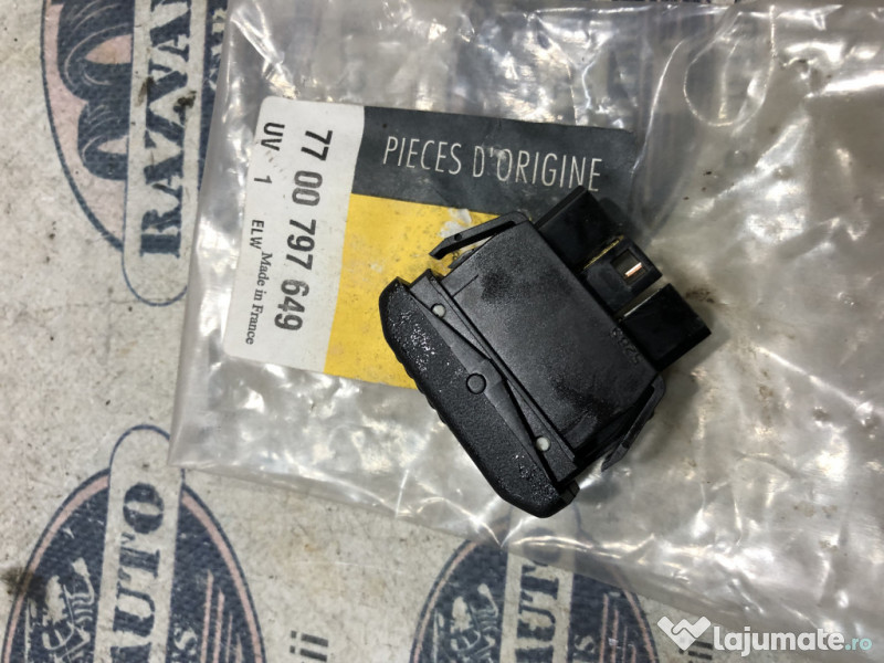 Buton geam Renault Clio. Cod(uri): 7700797649. Piesele comercializate sunt originale, provenite din dezmembrari. Dispunem de o gama larga de piese multimarca. Piesele sunt verificate inainte de a fi puse spre vanzare. In caz de neconformitate piesa se poate returna. Va rugam sa verificati disponibilitatea pieselor telefonic. Trimitem in tara prin curier. Marcă: Renault Producător: Renault