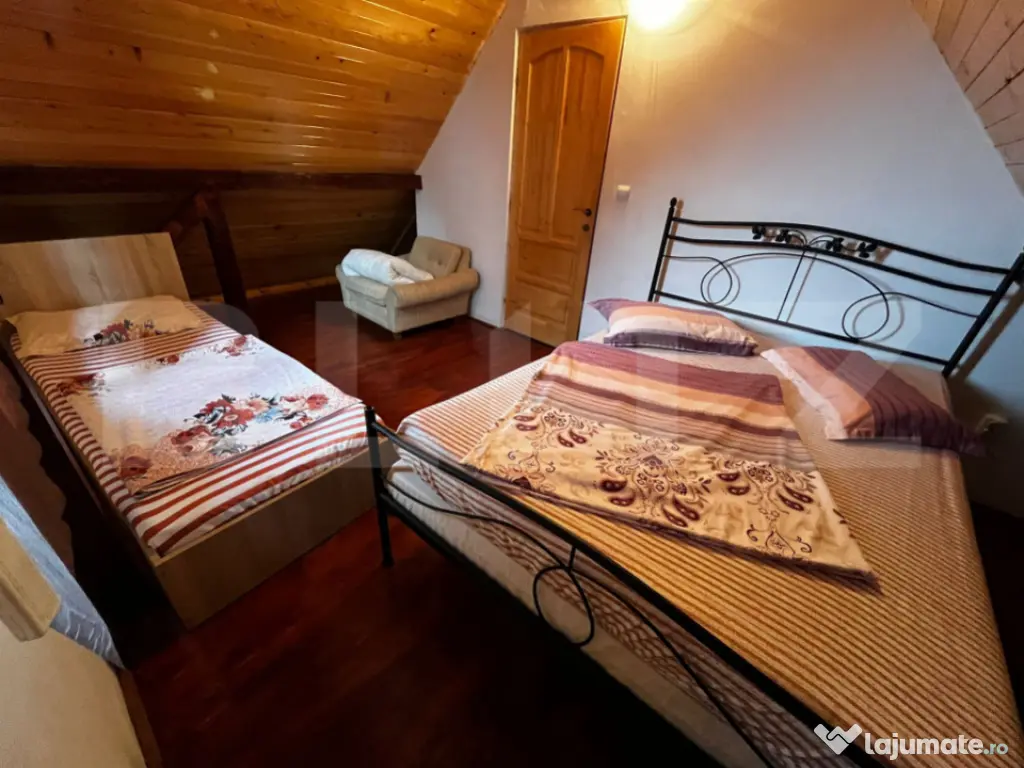 Tot ce vezi în poze rămâne: mobilier modern, electrocasnice, decorațiuni. Cabana este gata de utilizare sau de introdus direct în circuitul turistic, fără alte investiții suplimentare.