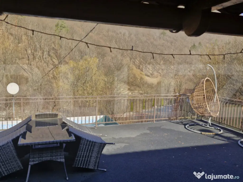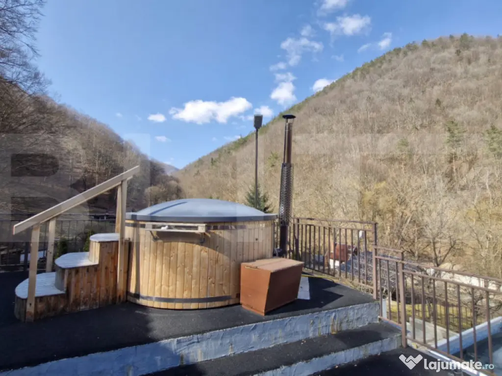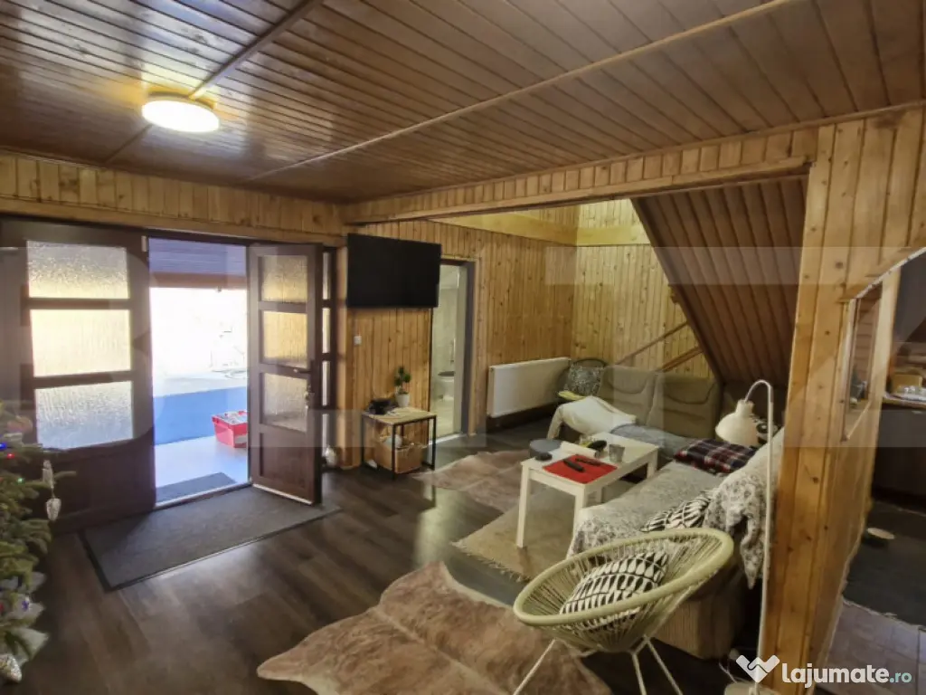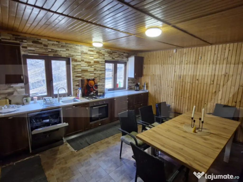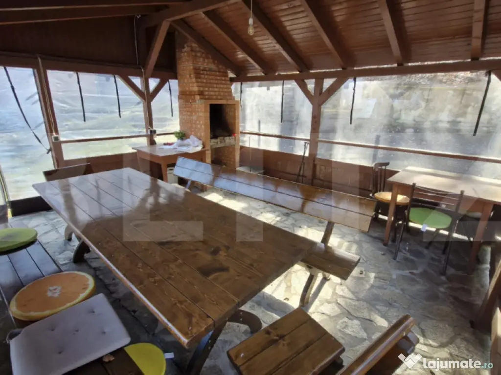 Blitz va propune spre vanzare, o cabană primitoare, perfectă pentru relaxare sau investiție în turism, amplasată într-o zonă deosebit de frumoasă, unde natura și intimitatea se îmbină armonios. Proprietatea dispune de 5 camere spațioase, luminoase și confortabile, ideale pentru familie și prieteni, precum și de 1 baie funcțională. În exterior, te bucuri de facilități care transformă fiecare zi într-o vacanță: Ciubăr pentru momente de relaxare în aer liber Foișor închis separat, amplasat lângă cabană – perfect pentru mese festive sau seri liniștite indiferent de vreme Baltă de pești populată, ideală pentru pescuit recreativ și atmosferă autentică Piscină pentru zilele călduroase de vară Terasă cu zonă de relaxare, unde te poți bucura de aer curat și peisaje încântătoare Această proprietate este alegerea ideală pentru cei care își doresc o oază de liniște, departe de agitația orașului, dar cu toate facilitățile necesare pentru confort și relaxare. Pentru mai multe detalii sau programarea unei vizionări, nu ezitați să ne contactați! Cod ofertă / ID BLITZ: P165929 Id intern: P165929 Număr Băi: 1 Utilități: Apă