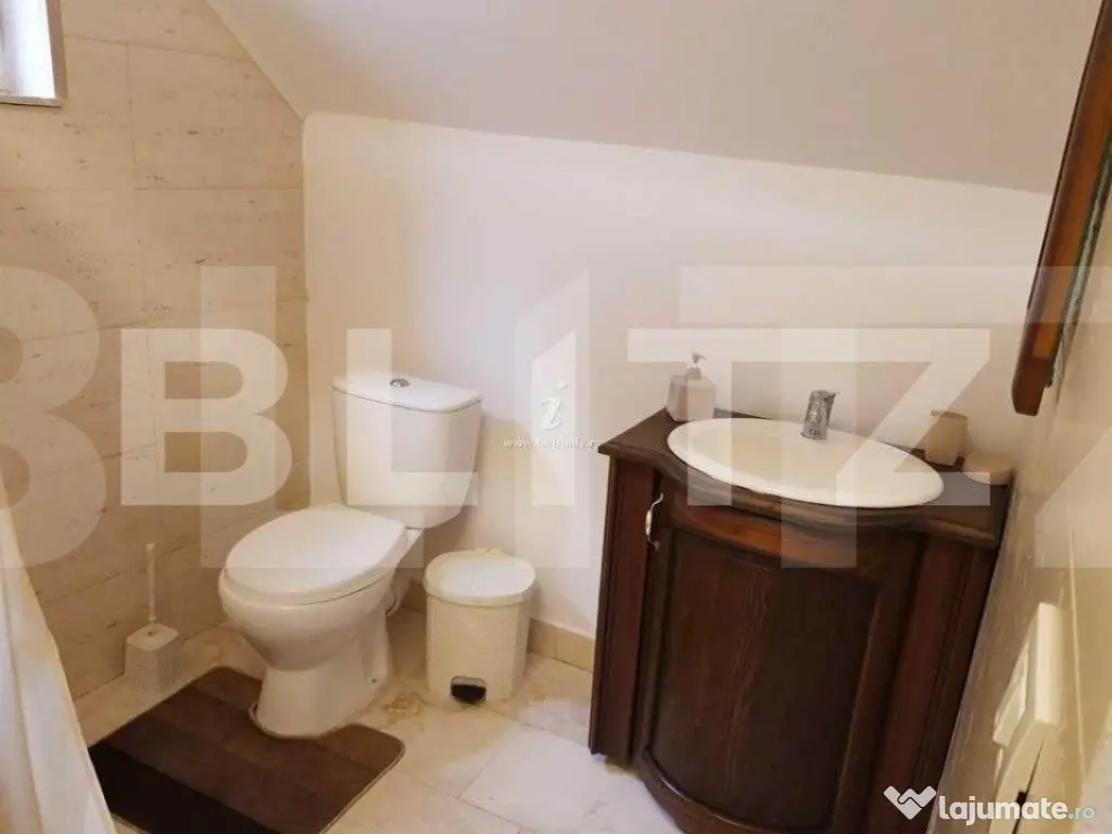 Blitz va propune spre vanzare o cabana de 8 camere, 8 bai, 2 living-uri, 3 terase, 2 balcoane, bucatarie, cancalizare, drum de acces pana in fata pensiunii, 250m de la DN, 450mp construiti, teren 700mp, incalzire centrala + termosemineu + 3 parcele a 500mp langa casa fiecare cu CF in cota de 1/1, mobilata complet. Pentru mai multe detalii contactati-ne cu incredere! Cod ofertă / ID BLITZ: P96596 Id intern: P96596 Număr niveluri imobil: 1 Număr Băi: 8 Nr. locuri parcare: 1