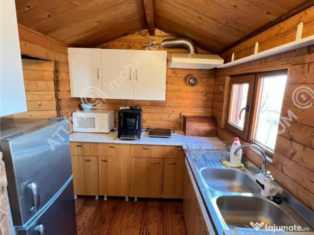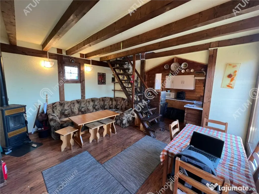 De vanzare cabana amplasata pe teren de 640 mp, cu regim de inaltime P E, situata in Tropinii Noi din Sibiu. Cabana are o suprafata utila de 42 mp si este compartimentata eficient: sufragerie de 15 mp, bucatarie de 4 mp, baie de 4 mp, camara de 2 mp si camera tehnica de 2 mp. La etaj se afla o camera amenajata ca dormitor, in suprafata de 15 mp, cu doua paturi duble, ideala pentru familie sau oaspeti. Constructia beneficiaza de izolatie eficienta: 10 cm de vata bazaltica la etaj (refacuta recent), iar la parter si acoperis vata minerala cu folie de aluminiu si polistiren, asigurand un bun confort termic pe tot parcursul anului. Acoperisul este realizat din tigla ceramica Tondach, durabila si estetica. Proprietatea este racordata la curent electric, inclusiv trifazic, dispune de apa din fantana cu hidrofor nou si filtru de apa in 3 etape instalat recent, precum si de bazin vidanjabil de mare capacitate. Terenul are o suprafata generoasa de 640 mp, situat in teritoriul administrativ al municipiului Sibiu, cu PUZ aprobat, oferind posibilitatea construirii unei case. Deschiderea la strada este de 13 metri. Jumatate din teren are panta lina, iar cealalta jumatate panta mai accentuata. Proprietatea include o livada cu pomi si arbusti fructiferi precum si parcare amenajata pentru 3 masini. O proprietate completa, potrivita atat pentru relaxare la sfarsit de saptamana, cat si ca investitie sau viitoare locuinta permanenta Valoarea de achizitie a cabanei este de 77.990 euro negociabil. ID intern: 3260. Număr Băi: 1 Posibilitate parcare: Da Nr. locuri parcare: 3 Utilități: Curent