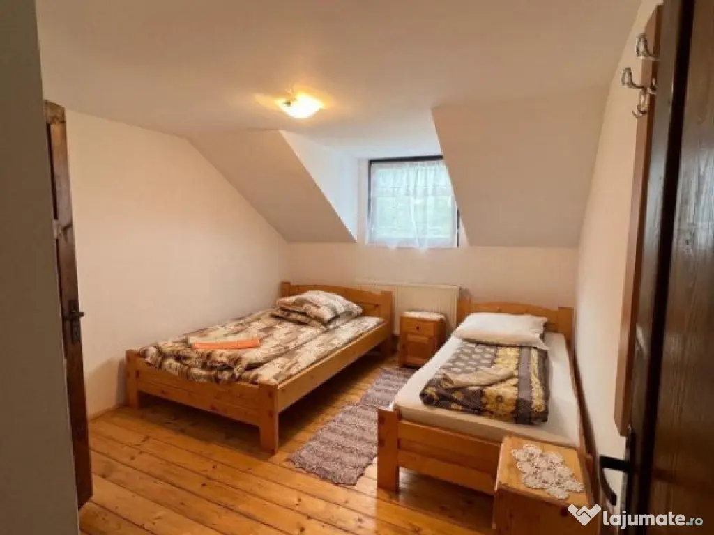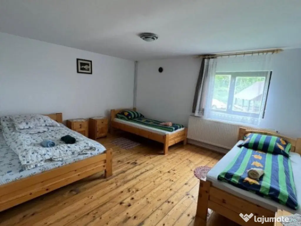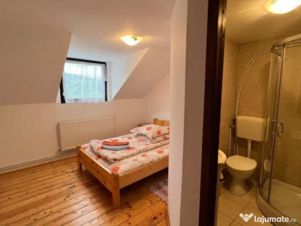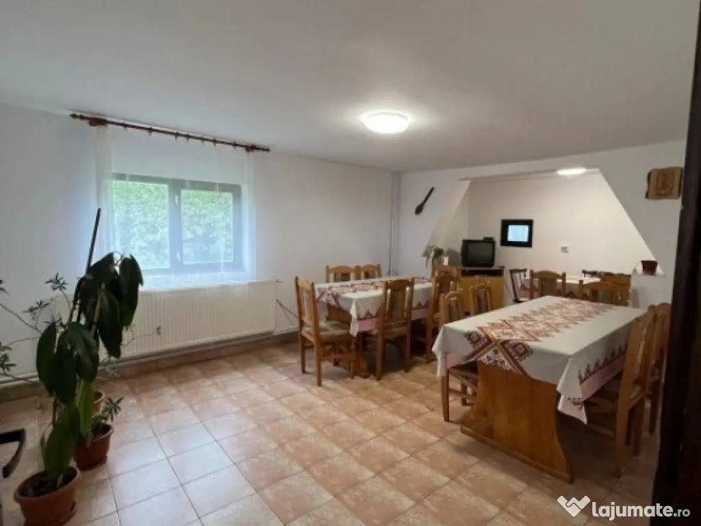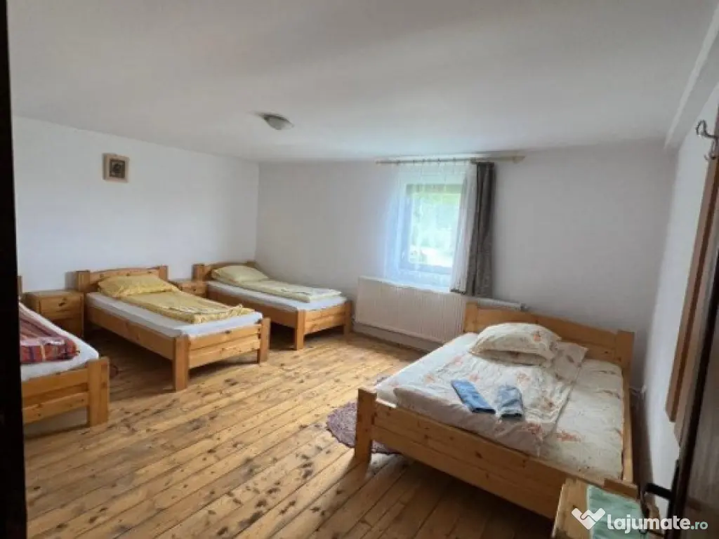De vanzare cabana cu 9 camere. Aceasta se afla situata in localitatea Rachitele, este construita din lemn si compusa din: Demisol; camera tehnica, Parter; hol, living, bucatarie, 2 dormitoare, baie si o terasa de aprox 16 mp. Etaj; hol, 6 camere, 6 bai si terasa. Podul poate fi folosit ca spatiu de depozitare. Imobilul mai dispune si de un foisor cu suprafata de aproximativ 18 mp, iar accesul se face dintr-un drum public pietruit, distanta pana la drumul asfaltat fiind de aproximativ 4 km. Pentru mai multe detalii, nu ezitati sa ne contactati. Cod ofertă / ID BLITZ: P2916 Id intern: P2916 Număr niveluri imobil: 1 Număr Băi: 7 Nr. locuri parcare: 5-10
