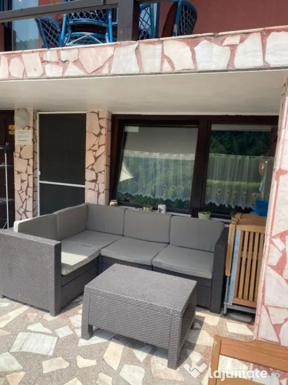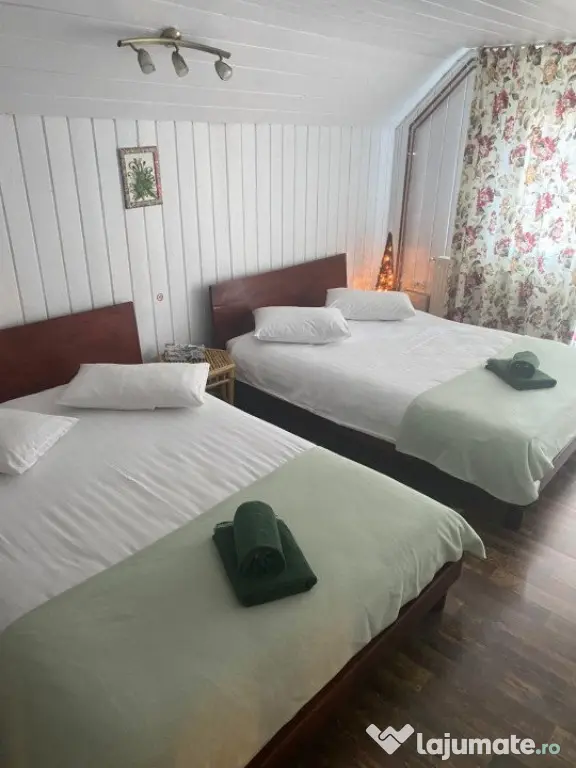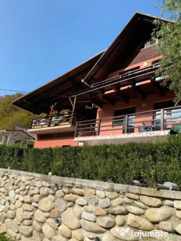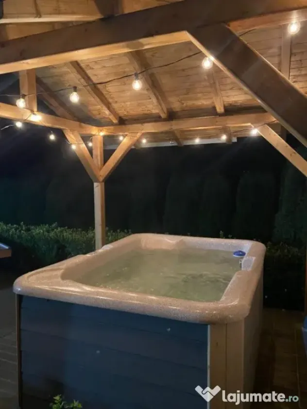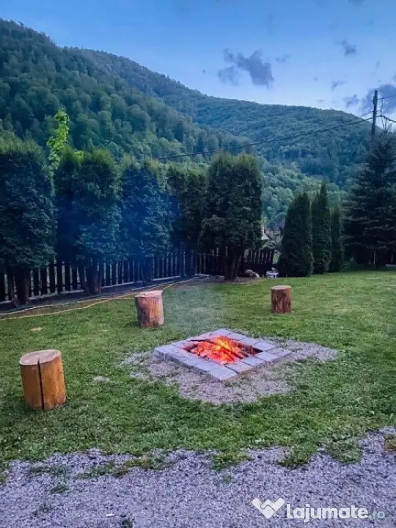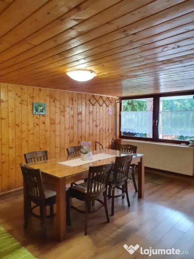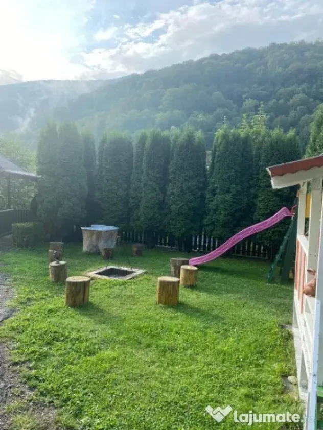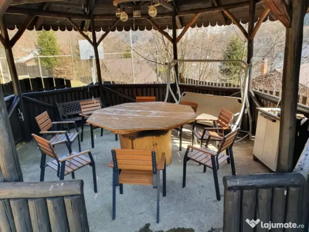 In curte este recent constuita o casuta din lemn pentru 4 persoane cu iesire in gradina.