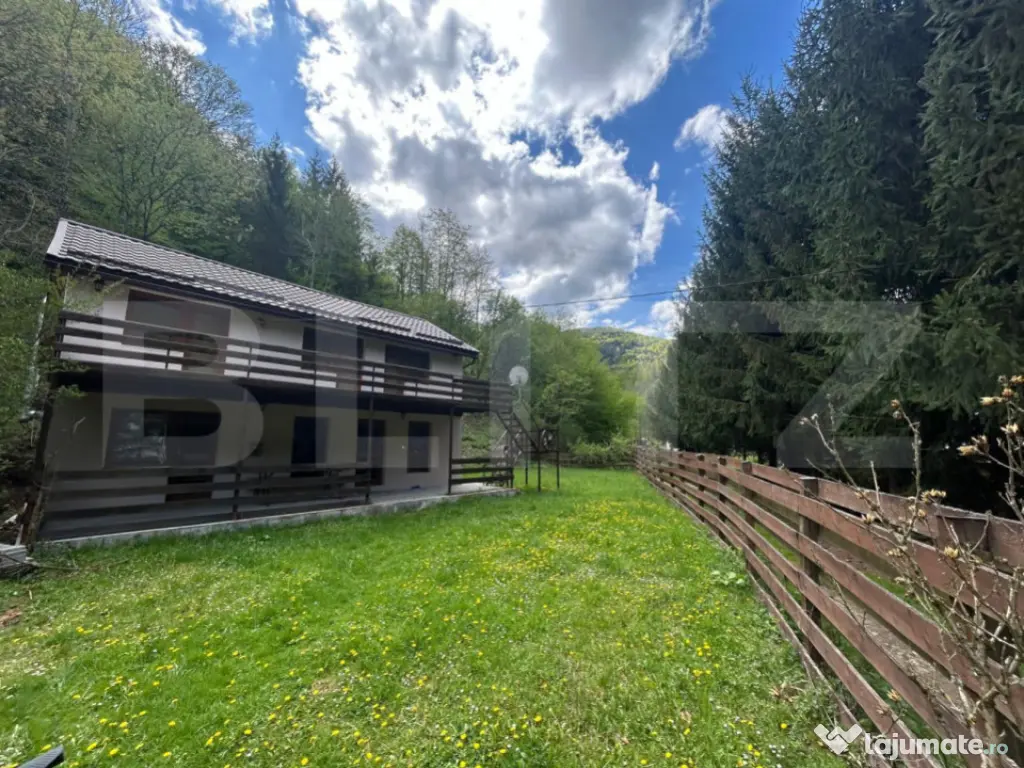 Se vinde cabană la Marișel,la doar 1 km de coada Lacului Tarnița și la 8 km de pârtia de ski. Accesul se face de la strada principală,terenul cu CF are suprafața de 810 mp și construcție de 112mp utili,terasă de 48 mp(24 mp etaj) pe 2 nivele dispusă astfel: Living spațios cu Bucătărie open-space 4 dormitoare,fiecare dispune de baie proprie (4 băi) camera tehnică (centrală cu lemne,boiler..) terasă acoperită Incălzirea se face cu centrală cu lemne și are toate utilitățile.Cabana-pensiune este dispusă astfel:Parter:living cu bucătărie,1 camera cu baie si camera tehnică,terasă acoperită Etaj: 3 dormitoare cu 3 băi,intrarea se face separat in fiecare camera de pe terasa exterioară.Casa este potrivită pentru pensiune și exista posibilitatea de extindere a camerelor.Acces la pârâu. Cabana VilaTarnița,situată in stațiunea Marișel declarată ecologică ,cu pârtii de ski si activități in apa precum caiac sau bărci electrice,te așteaptă să te bucuri de cel mai curat aer din Munții Apuseni. Preț: 125.000 ID anunț: 1763572697 Cod ofertă / ID BLITZ: P159978 Id intern: P159978 Număr niveluri imobil: 1 Număr Băi: 4 Nr. locuri parcare: 4 Apă Canalizare