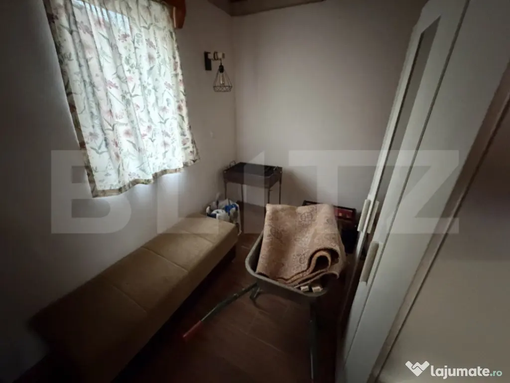Blitz vă propune spre vânzare o proprietate specială, situată într-un cadru natural deosebit, în apropiere de Blaj – locul perfect pentru cei care își doresc liniște, aer curat și un stil de viață aproape de natură. Cabană cochetă, construită în stil rustic-modern, impresionează prin designul cald cu elemente din lemn și prin terasa generoasă acoperită, ideală pentru relaxare în orice moment al zilei. Locuința este compartimentată eficient și oferă un spațiu interior primitor, cu zonă de living și bucătărie open-space, baie și spațiu de depozitare, iar la nivelul superior se află un mezanin tip loft, perfect pentru zona de dormit. Proprietatea se remarcă prin terenul generos amenajat cu livadă de pomi fructiferi, unde fiecare anotimp aduce un farmec aparte: primăvara pomii înfloresc spectaculos, vara oferă umbră și verdeață, iar toamna aduce roade bogate. Pe teren se regăsesc multiple spații pentru relaxare în aer liber: terasă, zonă de picnic și un cadru natural care oferă intimitate și panoramă superbă asupra dealurilor din jur. Această proprietate este ideală pentru: • casă de vacanță • refugiu de weekend • investiție în turism (Airbnb / cabană de închiriat) Dacă îți dorești un loc unde să te deconectezi complet de agitația orașului, această proprietate poate fi alegerea perfectă. Cod ofertă / ID BLITZ: P166395 Id intern: P166395 Număr niveluri imobil: 1 Număr Băi: 1 Nr. locuri parcare: 1