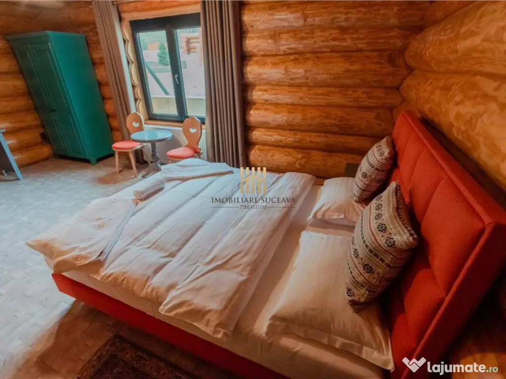 Cabana din Busteni in Bucovina! Zona de munte! Complet utilata si mobilata! Living plus 4 dormitoare; Fiecare dormitor are baie proprie! Termosemineu si calorifere! Curent electric monofazat si trifazat! Apa curenta! Fosa septica dar si canalizare! Suprafata utila 180 mp! Teren: 1200 mp! Pret: 205000 euro! Comision quot;0quot; pentru agentie! Detalii: 0727817187 Număr Băi: 4 Comision cumpărător: 0% Posibilitate parcare: Da Nr. locuri parcare: 5-10 Curent Apă Canalizare