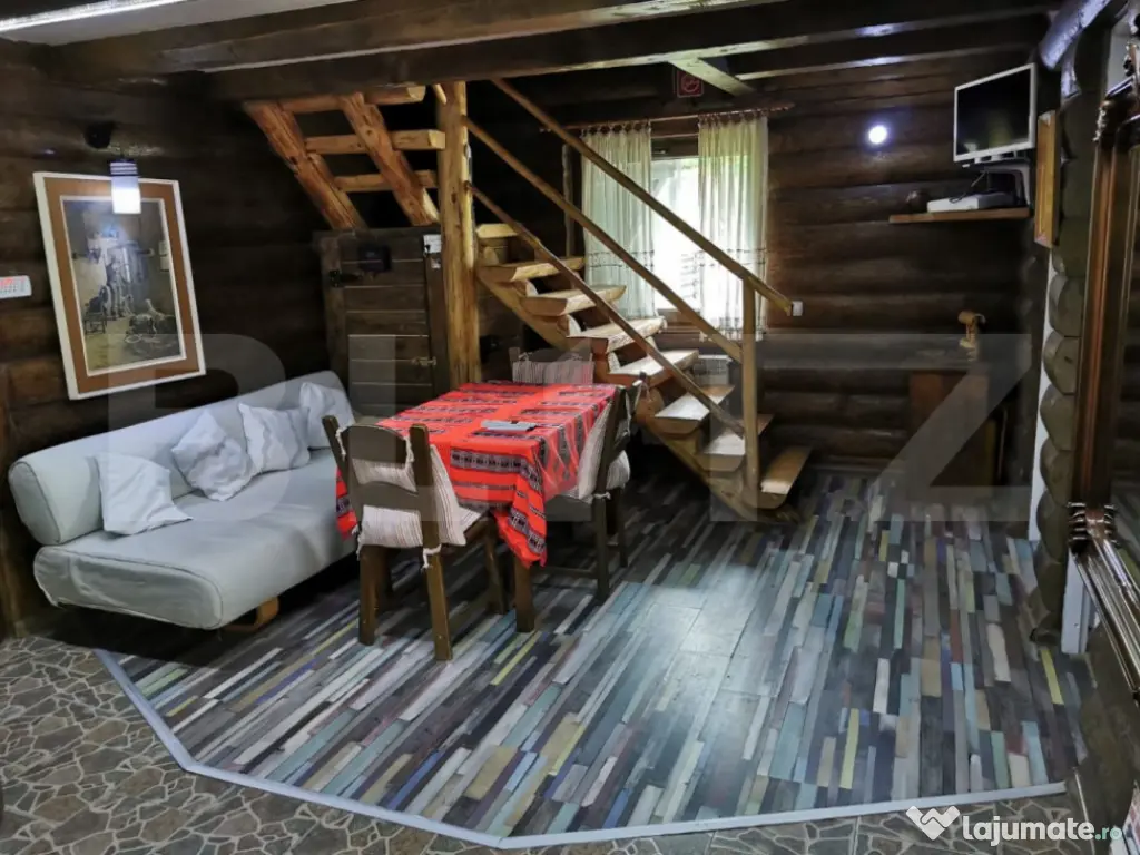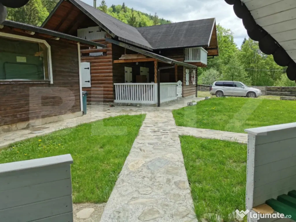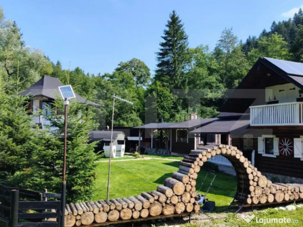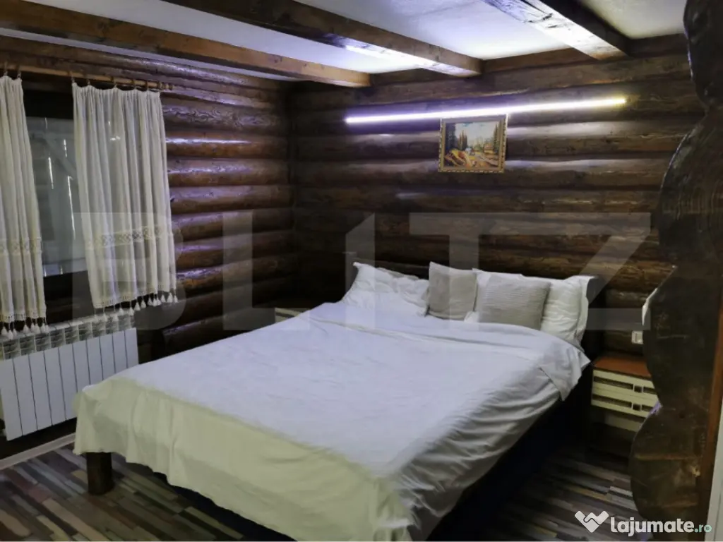 Blitz Imobiliare vă prezintă o casa de vacanță deosebit de frumoasă in localitatea MOLID, complet utilată, teren generos și facilități premium, fără vecini pe o rază de minim 1km Suprafață utilă cabană: 136 mp (parter + mansardă) Teren: 3.300 mp (împrejmuit cu gard) Beci: 24 mp Compartimentare • 5 dormitoare • Living • Bucătărie • 5 băi • Cabana din lemn rotund, izolată interior Anexe & Facilități • Căsuță ( dormitor ) 12 mp cu baie proprie • Căsuță ( dormitor ) 10 mp cu baie proprie • Foișor închis cu bucătărie proprie– 35 mp • Clădire cu saună, ciubăr și baie – 40 mp • Magazie lemne – 40 mp • Miniteren de fotbal (în construcție) • Iaz cu pești – aprox. 700 mp • Curte 500 mp cu iarbă și alei betonate cu piatră Utilități & Dotări • Termoșemineu pe lemne cu calorifere • Panouri solare cu acumulatori • Apă din puț (în cădere) • Fosă septică • Mobilată complet Localizare retrasă, liniște și peisaj natural deosebit în inima Bucovinei – ideală pentru vacanțe, retreat-uri sau investiție turistică. Cod ofertă / ID BLITZ: P150721 Id intern: P150721 Număr niveluri imobil: 1 Număr Băi: 5 Nr. locuri parcare: 5-10 Curent Apă