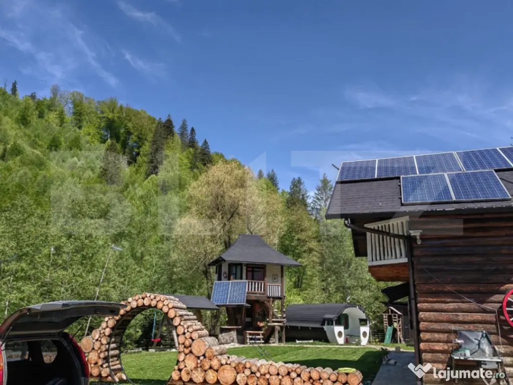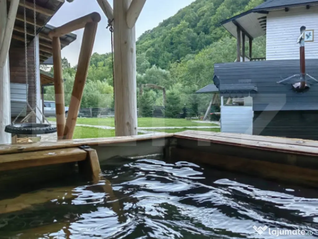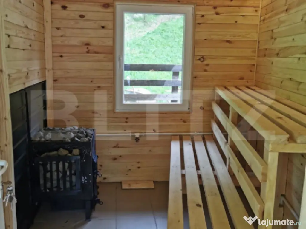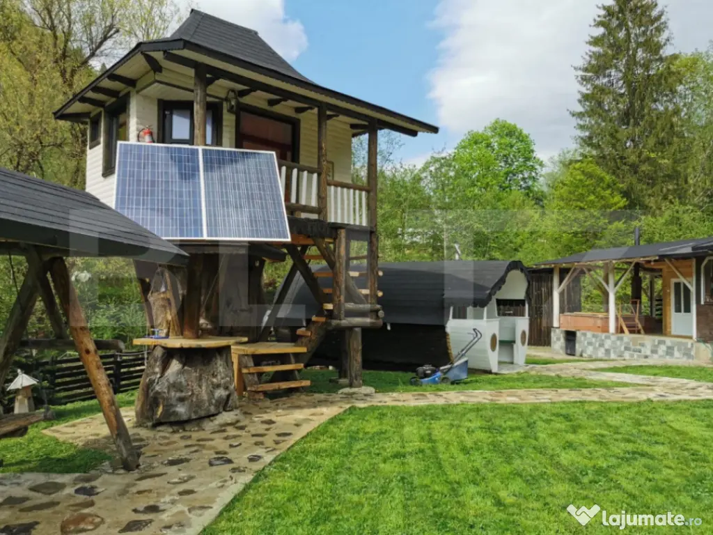 Blitz Imobiliare vă prezintă o casa de vacanță deosebit de frumoasă in localitatea MOLID, complet utilată, teren generos și facilități premium, fără vecini pe o rază de minim 1km Suprafață utilă cabană: 136 mp (parter + mansardă) Teren: 3.300 mp (împrejmuit cu gard) Beci: 24 mp Compartimentare • 5 dormitoare • Living • Bucătărie • 5 băi • Cabana din lemn rotund, izolată interior Anexe & Facilități • Căsuță ( dormitor ) 12 mp cu baie proprie • Căsuță ( dormitor ) 10 mp cu baie proprie • Foișor închis cu bucătărie proprie– 35 mp • Clădire cu saună, ciubăr și baie – 40 mp • Magazie lemne – 40 mp • Miniteren de fotbal (în construcție) • Iaz cu pești – aprox. 700 mp • Curte 500 mp cu iarbă și alei betonate cu piatră Utilități & Dotări • Termoșemineu pe lemne cu calorifere • Panouri solare cu acumulatori • Apă din puț (în cădere) • Fosă septică • Mobilată complet Localizare retrasă, liniște și peisaj natural deosebit în inima Bucovinei – ideală pentru vacanțe, retreat-uri sau investiție turistică. Cod ofertă / ID BLITZ: P150721 Id intern: P150721 Număr niveluri imobil: 1 Număr Băi: 5 Nr. locuri parcare: 5-10 Curent Apă