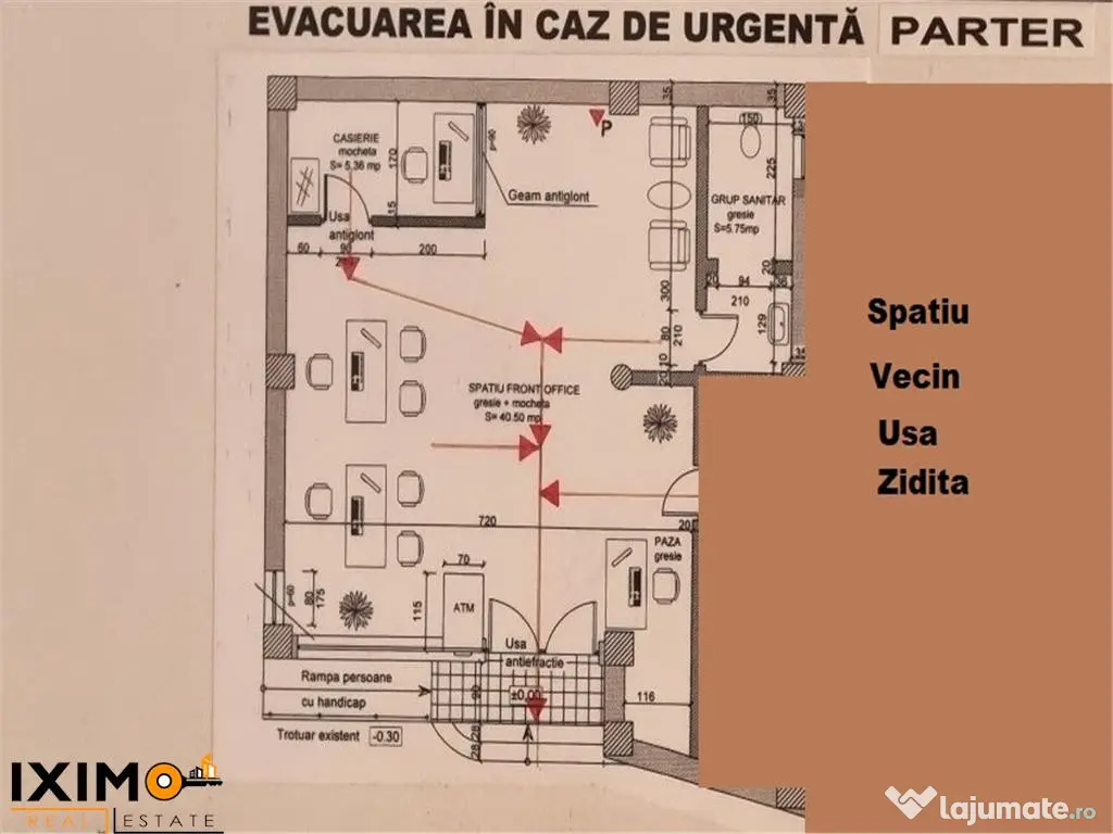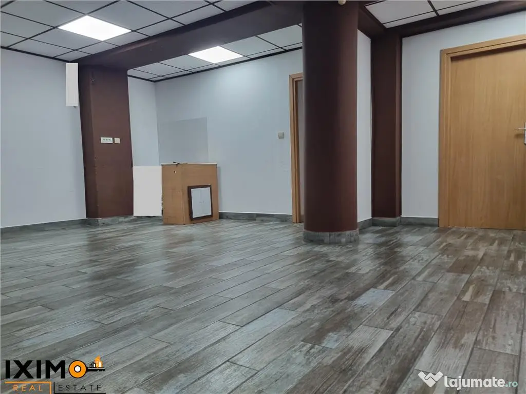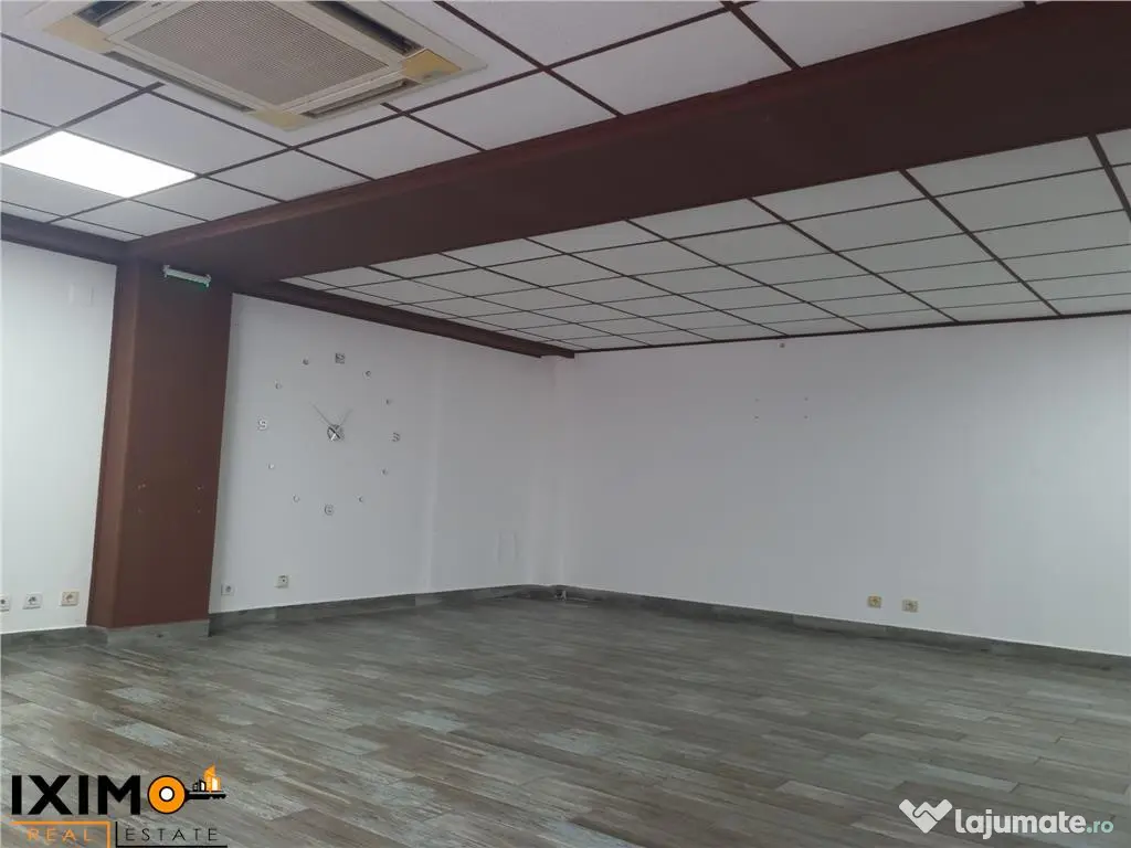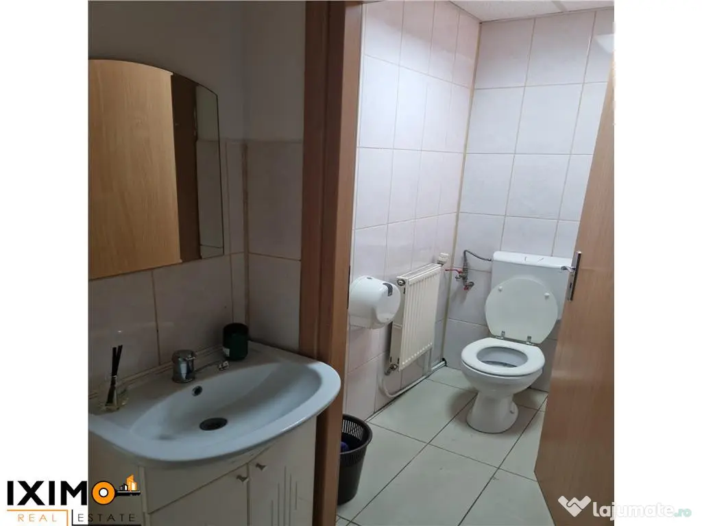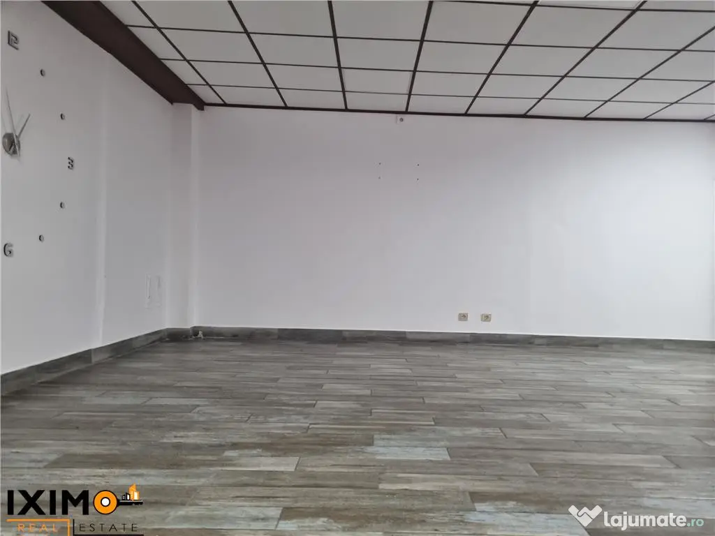 IXIMO Agentie Imobiliara va propune spre inchiriere -un spatiu LA CHEIE pe parter -de tip open space compus dintr-o sala de cca .50 mp si un grup sanitar[cca.5 mp]compus din hol cu lavoar si baie cu fereastra aerisire . Excelent amplasat se preteaza unui showroom specializat[ nu magazin/ nu bar/nu fast food ] sau unei activitati din sfera prestarilor de servicii inclusiv medicale,scoala de soferi ,atestate,etc. Spatiul se poate panota cu afisaj de semnalizare a prezentei atat pe geamurile SUPERMARI ale vitrinei stradale cat si pe fatada de zidarie a cladirii ,existand posibilitate de parcare atat langa intrarea in spatiu cat si in fata acestuia. Contractul se face pe minim 2 ani cu posibilitate de denuntare intr-un termen de 60 de zile dar doar dupa primul an din contract. Nu necesita investitie ci doar o simpla igienizare !!! Contorizare independenta pe toate utilitatile. Suprafaţă totală: 55 m² An finalizare construcție: 1989 Vitrină: 10 m Stadiu construcţie: Finalizat Înălţime spaţiu: 3 m Număr încăperi: 2 Număr Grupuri Sanitare: 1 Tip imobil: Centru comercial
