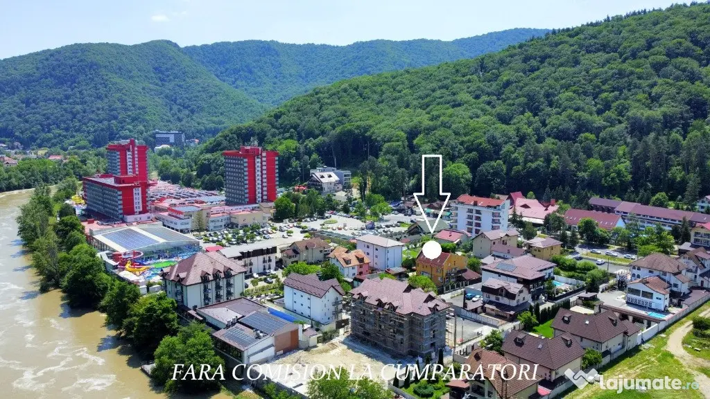 Imobilul este amplasat in zona turistica de prim interes a statiunii Calimanesti-Caciulata, la 300 m de Cozia Aqua Park, un reper al timpului liber petrecut in Valcea in ultimii ani, avand in vecinatate numeroase piscine si restaurante plus alte activitati turistice.