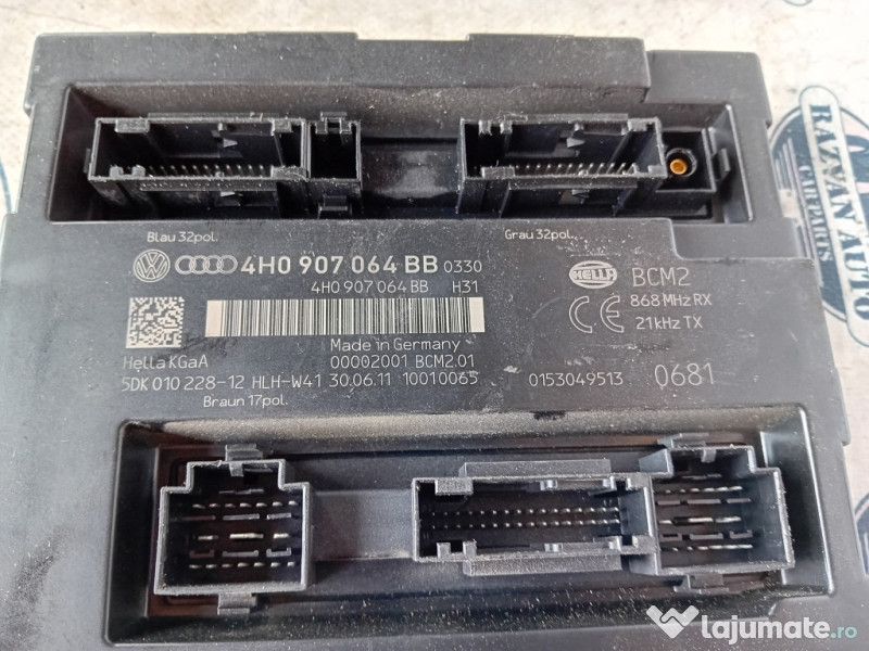 Calculator confort Audi A8 2012. Cod(uri): 4H0907064BB. Piesele comercializate sunt originale, provenite din dezmembrari. Dispunem de o gama larga de piese multimarca. Piesele sunt verificate inainte de a fi puse spre vanzare. In caz de neconformitate piesa se poate returna. Va rugam sa verificati disponibilitatea pieselor telefonic. Trimitem in tara prin curier. Marcă: Audi Producător: Audi