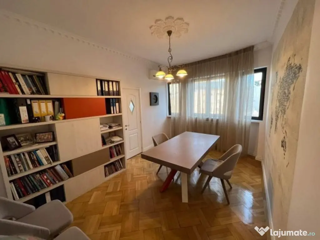 Calea Victoriei, va propunem spre vanzare un spatios Apartament 4 camere 3 boxe + alte 2 la mansarda în bloc istoric 1958 de 5 etaje Fără bulina. Cu lift unde a locuit compozitorul George Enescu.(Un etaj mai sus decât apartamentul meu) sigla pusa de primărie cu George Enescu pe scara blocului Suprafața apartament și boxe 155mp Locatie langa hotel Radisson zona turistica se inchiriaza in zona cu pretul de 2000 --2400 euro apartamentele de dimensiunea aceasta.. Apartamentul se afla la etajul 3 din 5 pe strada George Enescu nr 9 sector 1 la 50 de metri de intersecția Calea Victoriei cu Știrbei Voda și 10 metri de Piață Amzei Use întrare antiefractie tâmplărie termopan gresie pe hol parchet lemn masiv în camere gresie faianță în bai Fiecare dormitor are baie proprie exact ca Hotelurile de lux și aer condiționat Renovat recent inclusiv schimbat instalația electrica și sanitara complet mobilat și utilat cu desinger modern Compunerea apartamentului decomandat : Hol mare la întrare în fata camerelor de 13mp Dormitor 1 - 15,16 mp + baie proprie 4.69 Dormitor 2 -16.08 mp+ baie proprie 4.59 Dormitor 3 -16.36 mp +wc și cabina dus 1.07 mp Living mare 4 - 21.76 mp Bucătărie - 6.59 mp Apartamentul deține și 2 camere de depozitare de 3.15 mp și 4.81 mp Balcon mare 6.23 mp pe toată lungimea Livingului 3 boxe depozitare la subsol de 4mp, 5 mp și 6 mp + 2 la mansarda de 7 mp și 2 mp Mobilat și utilat complet inclusiv mașina spălat plita electrica în bucătărie etc. Suprafața totală 128 mp Suprafața utila 122 mp 3 boxe + 2 la mansarda 22mp Clădirea dispune de centrala propie Este mobilat și utilat complet preferabil sa se vândă cu tot ce apare în poze. Este la 10 metri de Piață Amzei și Mega Image La 50 metri de Sala Palatului și Hotel Radinson La 2 min. De metrou Piața Romana Apartamentul poate fi folosit foarte ușor și de firma birouri,notariat dispunând de cele 3 boxe pentru depozitare și 2 mansarde în total de 22 mp. Actele sunt pregatite pentru vanzare,pentru mai multe informatii, sau stabilirea unei vizionari, nu ezitati, a ne contacta! Confort: Lux Tip imobil: Bloc de apartamente Număr Băi: 2 Posibilitate parcare: Da
