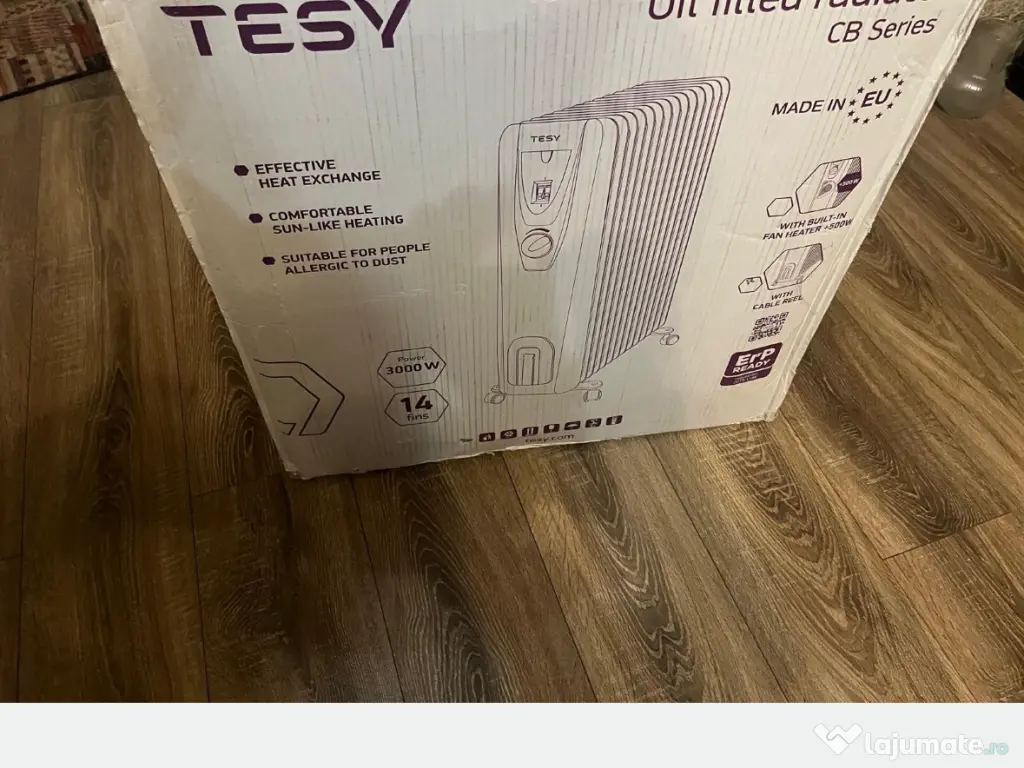 Radiator electric Tesy de 3000W, un dispozitiv eficient pentru încălzirea spațiilor. Acesta este un produs nou, cu o putere mare și o construcție solidă, care vă va oferi confort termic în sezonul rece.Se vinde doar în Brașov sau împrejurimi.