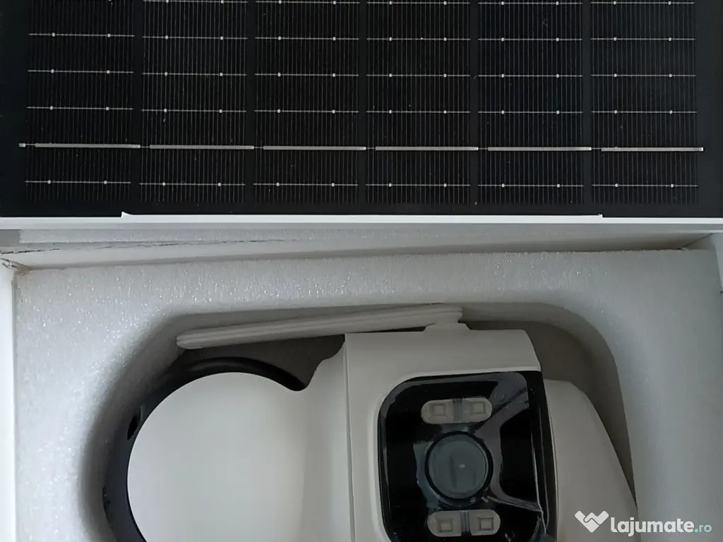 Funcționează cu cartela telefon și panou solar cu acumulator.