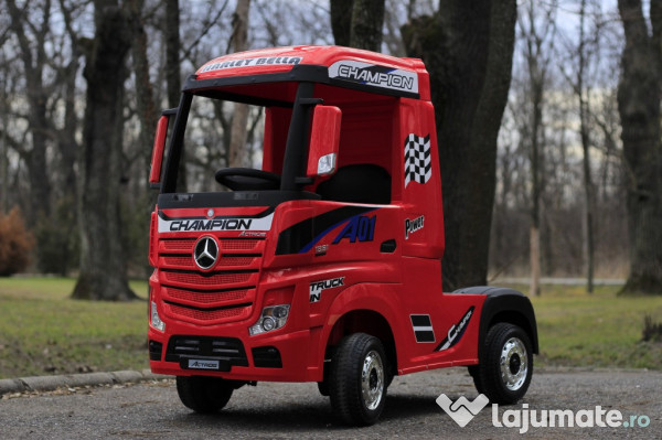 Benficiati de GARANTIE 24 Luni Transport GRATUIT Pentru comenzi si info contactati-ne O729.189.471 Dotari: Camion electric Mercedes ACTROS echipata PREMIUM 2 USI cu deschidere si siguranta 4 motoare electrice de putere 45W Far-uri si Stop-uri cu LED MANETA de schimbat directia de mers inainte/inapoi Pornire/Oprire din Buton Dotata cu amortizoare Pornire LENTA pentru confortul copilului Oprire LENTA pentru confortul copilului Scaun TAPITAT cu piele ecologica conformatabil pentru copil Echipat cu 1 loc pentru copil + 1 loc în picioare Roti MOI din cauciuc Sistem de tractare tip troler Music player echiapt cu RADIO, port USB, CARD minSD si Bluetooth Echipata cu 2 BATERII 12V 7Ah TRACTIUNE 4X4 Produsul include INCARCATOR si TELECOMANDA CONTROL PARENTAL prin telecomanda de la distanta ta 3 nivele de viteza selectabile din telecomanda Masinuta mai poate fi ghidata manual de catre copil Volan echipat cu butoane pentru activare efecte sonore Indicator volataj baterie 2 nivele de viteza selectabile din Bordul masinutei Sistem de iluminat Conexiune Mp3 prin cablu jack Treapta de marsarier Produsul include incarcator si telecomanda Centura de siguranta cu 3 singura prinderi Greutate proprie 31 Kg Greutate total admisa 60 Kg Produs recomanda pentru copil 24 – 84 Luni Dimensiunile produsul montat 1260x680x1020 mm Puteti cumpara acest produs in maxim 6 rate, fara dobanda, cu CARD de cumparaturi de la banci partenere precum: Star BT / BCR / BRD Finance / Alpha Bank /First Bank. Pentru comenzi si info contactati-ne O729.189.471