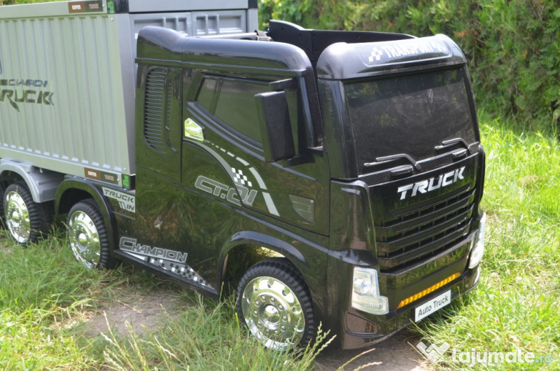 Camion electric pentru copii cu Remorca TIP container BJJ2011 4x35W Varsta recomandata de pana la 6 ani. Se poate utiliza si de catre copii sub 3 ani, doar cu supravegherea unui adult. Capcitate de incarcare pe scaun de pana la 35 kg Maneta pentru schimbarea directiei de mers inainte sau inapoi Control din telecomanda sau manual de catre utilizator. Acumulator de 12V 7Ah 4 motoare de 30W fiecare Roti moi din cauciuc EVA, silentioase si confortabile Scaun pentru 1 copil, Tapitat cu piele ecologica, de dimensium 0 x 40 x 23 cm si cu centura de siguranta Telecomanda cu frecventa 2.4 GHz, Trei viteze selectabile din telecomanda Pornire lenta si buton pentru oprire de urgenta Music player cu intrare AUX (MP3) / SD / TF / USB Dimensiuni produs montat: 175 x 49 x 76 cm Greutate produs: 35.6 kg Dimensiuni colet: 117 x 56 x 64 cm Greutate colet: 43 kg Garantie 1AN, TRANSPORT GRATUIT , LIVRARE RAPID PRODUS NOU Pret: 399 euro Telefon: O729.189.471