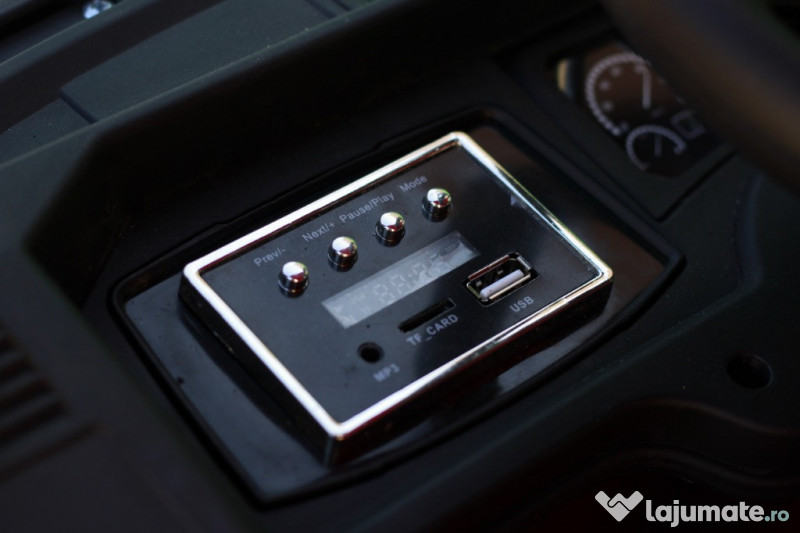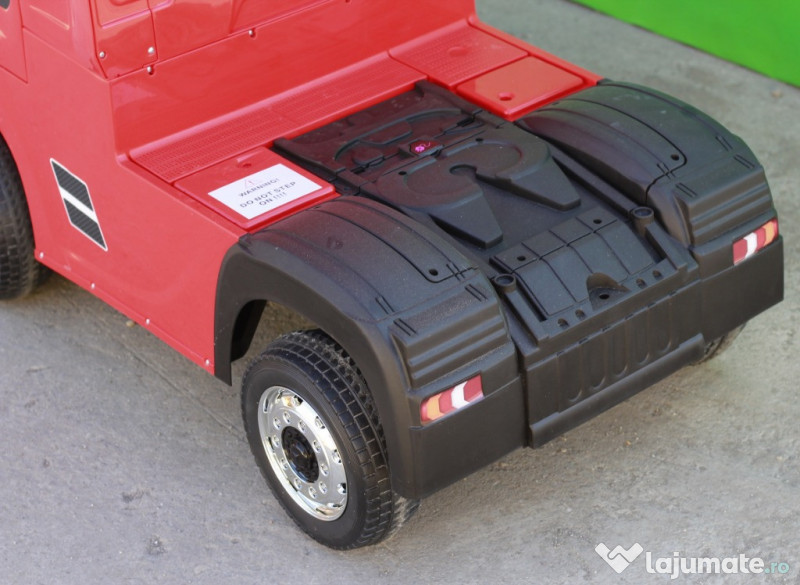 Camion electrica Mercedes Actros 4x35W 24V7Ah - 4 motoare electric de 35W - Tractiune 4x4 - Produs recomanda pentru 1 copil + 1 copil in picioare. - Frânare automată a motoarelor - Efecte sonore, Sunetul motorului la pornire - Telecomanda de 2,4 GHz cu distanta de aproximativ 100 m (frecventa unica) - Pornire lenta pentru un confort sporit al copilului - Far-uri si stop-uri LED - Music player cu RADIO , port USB, slot MiniSD Card, port Aux - volan cu comenzi pentru muzică, clanxon - 2 portiere cu deschidere si siguranta - 3 nivele de viteză (reglabile pe telecomandă) - Control prin telecomandă sau pedală de accelerație V-Max 3-7 km / h 2 nivele de viteza selectabile din bord (lent / rapid) 2 Baterii 12V 7Ah Camion echipat cu 1 loc pentru copil + 1 loc în picioare Muzică de divertisment cu efecte sonore Volumul reglabil Nivel baterie afisat in display-ul de pe Music player Anvelope MOI durabile si silentioase Sistem de amortizare Greutate la bord 31 kg Capacitate de încărcare 60 kg Varsta recomandata 36-72 luni Dimensiunile vehiculului în mm Dimensiunile vehiculului LxWxH în mm 1290x600x525 Dimensiuni ambalaj LxWxH în mm 1260x680x102 Garantie 1AN, TRANSPORT GRATUIT , LIVRARE RAPID PRODUS NOU Pret: 450 Euro Telefon: O729.189.471