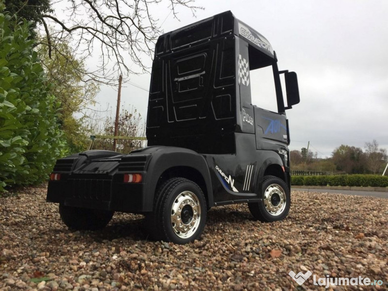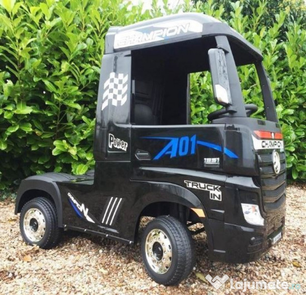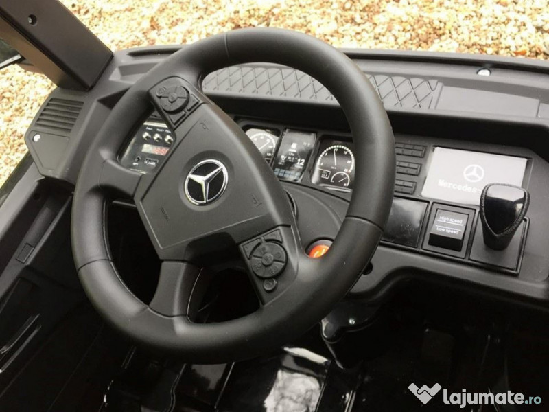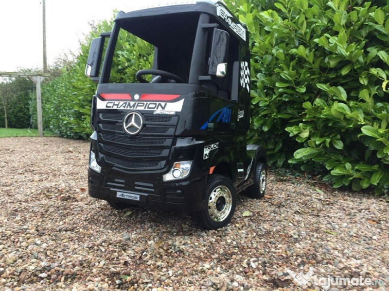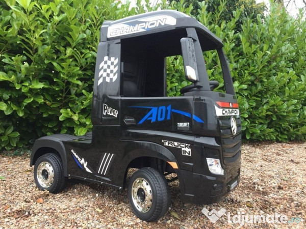 Benficiati de GARANTIE 24 Luni Transport GRATUIT Pentru comenzi si info contactati-ne O729.189.471 Dotari: Camion electric Mercedes ACTROS echipata STANDARD 2 USI cu deschidere si siguranta 4 motoare electrice de putere 45W Far-uri si Stop-uri cu LED MANETA de schimbat directia de mers inainte/inapoi Pornire/Oprire din Buton Dotata cu amortizoare Pornire LENTA pentru confortul copilului Oprire LENTA pentru confortul copilului Scaun conformatabil pentru copil Echipat cu 1 loc pentru copil + 1 loc în picioare Sistem de tractare tip troler Music player echiapt cu RADIO, port USB, CARD minSD si Bluetooth Echipata cu 2 BATERII 12V 7Ah TRACTIUNE 4X4 Produsul include INCARCATOR si TELECOMANDA CONTROL PARENTAL prin telecomanda de la distanta ta 3 nivele de viteza selectabile din telecomanda Masinuta mai poate fi ghidata manual de catre copil Volan echipat cu butoane pentru activare efecte sonore Indicator volataj baterie 2 nivele de viteza selectabile din Bordul masinutei Sistem de iluminat Conexiune Mp3 prin cablu jack Treapta de marsarier Produsul include incarcator si telecomanda Centura de siguranta cu 3 singura prinderi Greutate proprie 31 Kg Greutate total admisa 60 Kg Produs recomanda pentru copil 24 – 72 Luni Dimensiunile produsul montat 1260x680x1020 mm Puteti cumpara acest produs in maxim 6 rate, fara dobanda, cu CARD de cumparaturi de la banci partenere precum: Star BT / Raiffeisen / BCR / BRD Finance / Alpha Bank /First Bank Pentru comenzi si info contactati-ne O729.189.471