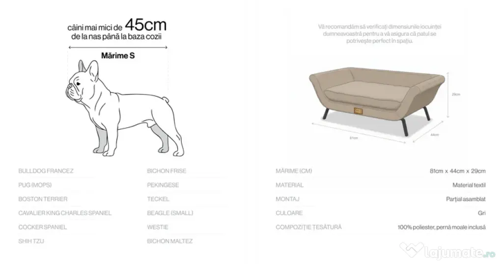 Canapeaua este deosebit de potrivită pentru câini sau pisici de talie mică.