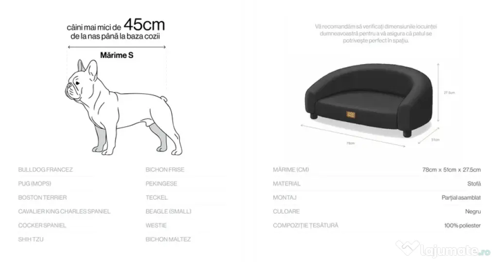 Canapeaua este deosebit de potrivita pentru câini sau pisici de talie mică si medie.