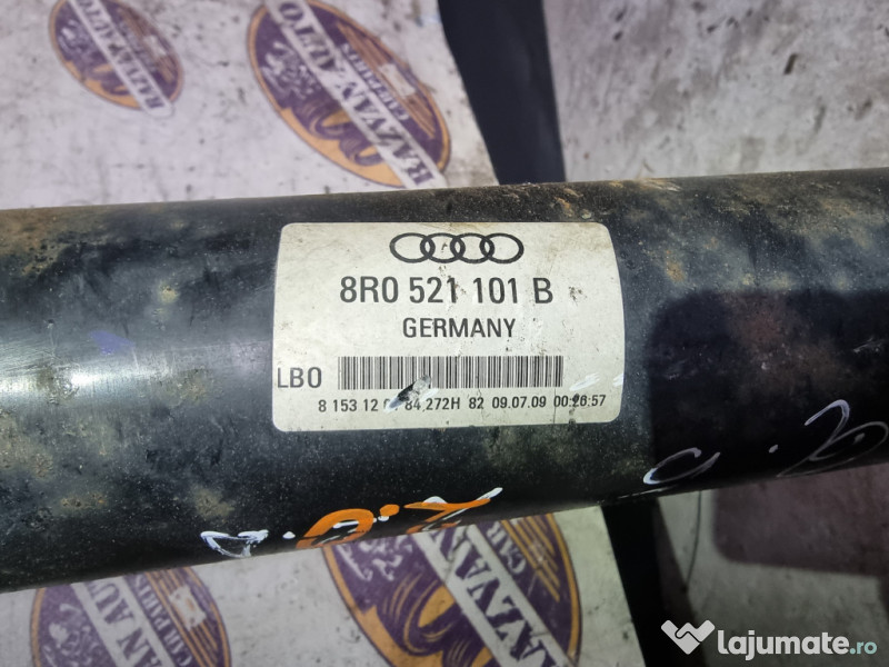 Cardan Audi Q5 2.0 (cod motor: CAH) Motorina 2010. Cod(uri): 8R0521101B. Piesele comercializate sunt originale, provenite din dezmembrari. Dispunem de o gama larga de piese multimarca. Piesele sunt verificate inainte de a fi puse spre vanzare. In caz de neconformitate piesa se poate returna. Va rugam sa verificati disponibilitatea pieselor telefonic. Trimitem in tara prin curier.