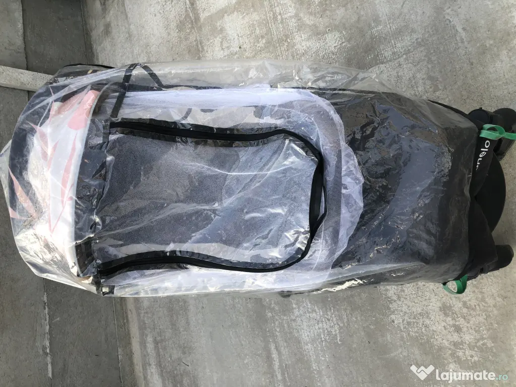 Are husa contra frigului la picioare, husa ploaie și antițânțari.